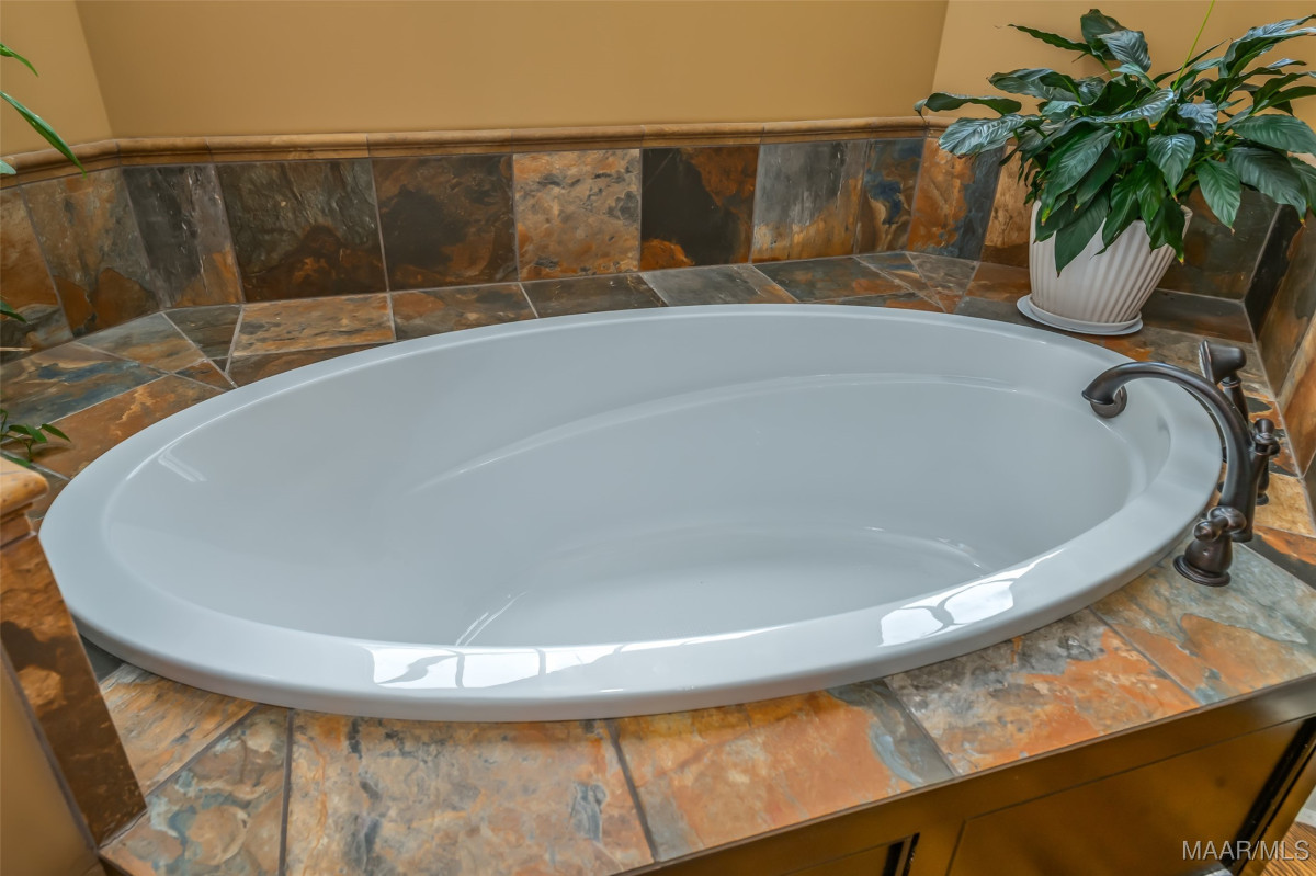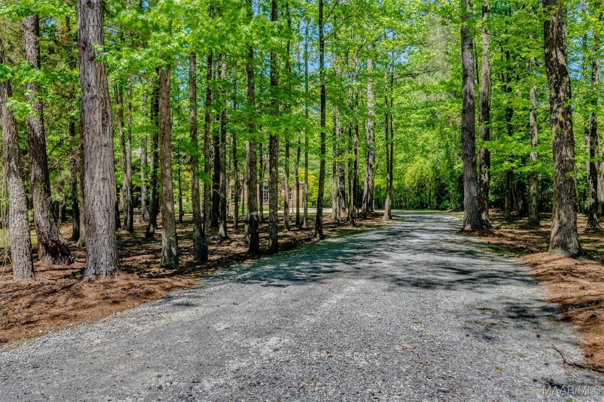 This home, CUSTOM BUILT by Nathan Watson & nestled on 2.55 acres, is LOADED with high-end finishes & custom touches that truly set it apart! Coming up the private driveway, you are greeted by professional landscaping & a PEACEFUL setting. The front porch has a vaulted tongue & groove ceiling, exposed wood beams & elegant double front doors, creating a grand & welcoming entrance. Step into the foyer, with a spacious Dining Room to one side-perfect for hosting gatherings or formal meals. On the opposite side is a large office, or optional library/sitting room, featuring custom built-ins. The Great Room boasts a tongue & groove ceiling, oversized stacked stone fireplace with expansive windows & a GORGEOUS view of the pool & back yard. The kitchen is a CHEF'S DREAM with KitchenAid Professional Series appliances, double ovens, six-burner gas stove, TWO large islands with additional storage, pellet ice machine, pull-out spice racks, & walk-in pantry. The Breakfast Room is OPEN to the Kitchen & also has AMAZING views. The primary suite is located on one side of the home & includes a sitting area with access to the covered back patio. The primary bath offers a true spa-like experience with a soaking tub, separate shower, double vanities & TWO closets with built ins. A secondary bedroom is also located downstairs, complete with an en suite bath & access to the back patio. Head upstairs where you'll find TWO guest bedrooms, EACH with a private bath. Delight in the MASSIVE bonus room with a connected sitting area. The outdoor living space is AMAZING with a HUGE covered porch with tile flooring, outdoor fireplace, built-in grill, sink, refrigerator, & granite countertops. Enjoy the kidney-shaped POOL with scored concrete pad & iron gate. Other features: surround sound, security system, underground sprinklers, drop zone, laundry room with sink, tankless water heaters. Also find crown molding, bull-nosed corners, foam insulation & 3 car garage. Easily zoned in to Pike Road School