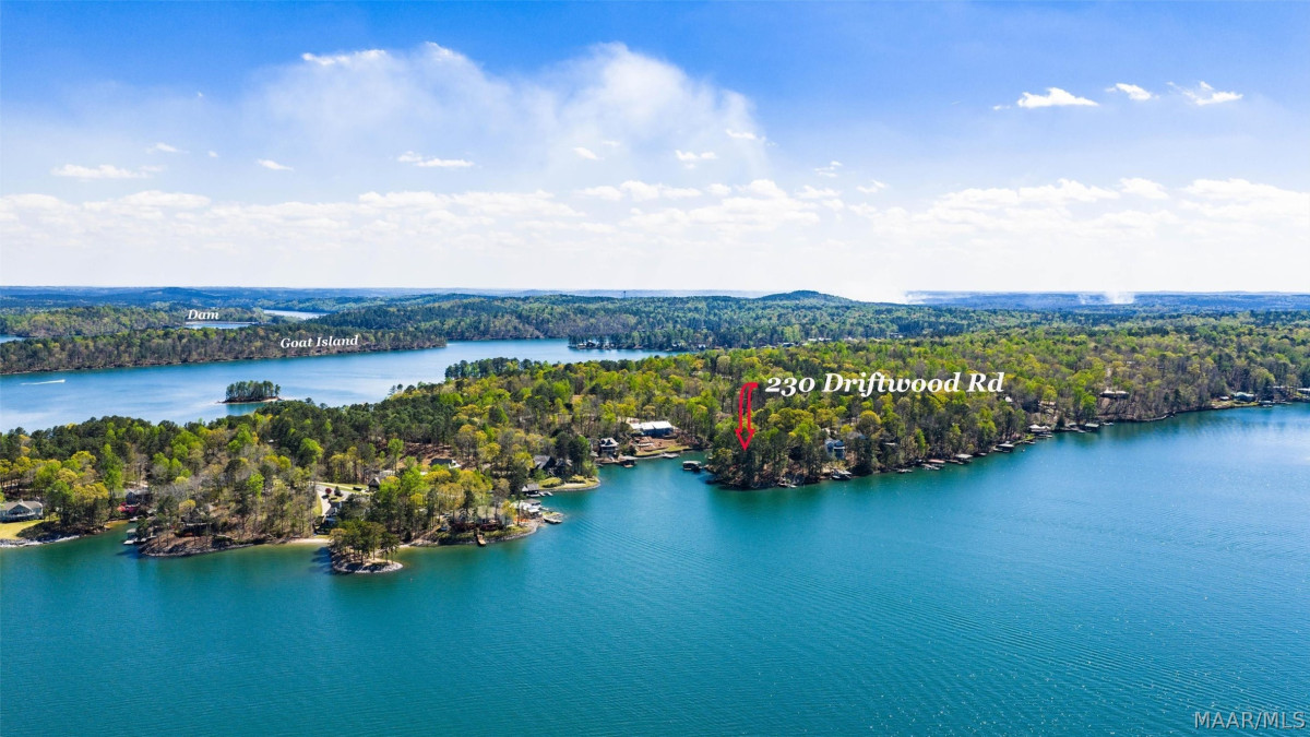 From Lake Martin Mini Mall on Hwy 63, take Hwy 50 towards Tallassee, slightly past Red Hill, turn left on Andrews Mill Road, take left on Driftwood Road, property will be straight ahead on the point.