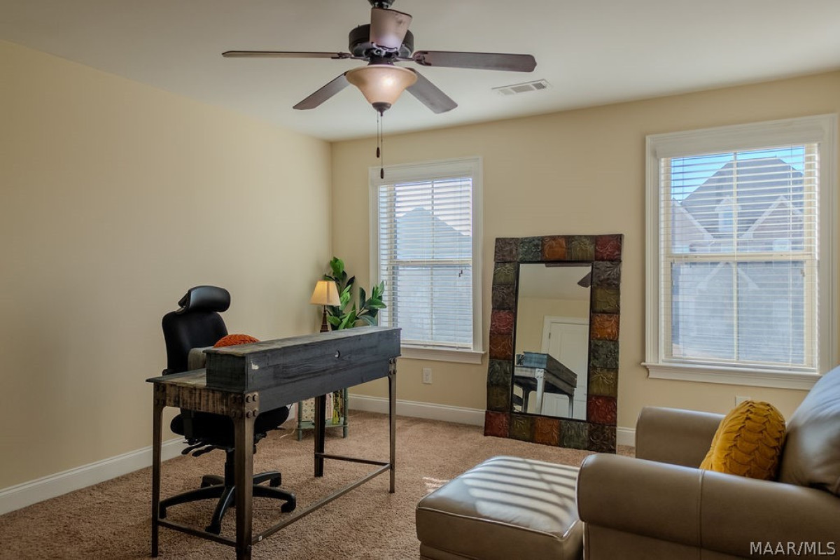 Enjoy outdoor living from the covered patio and porch in a neighborhood that offers a community pool and convenient access to shopping, dining, and Maxwell Air Force Base.