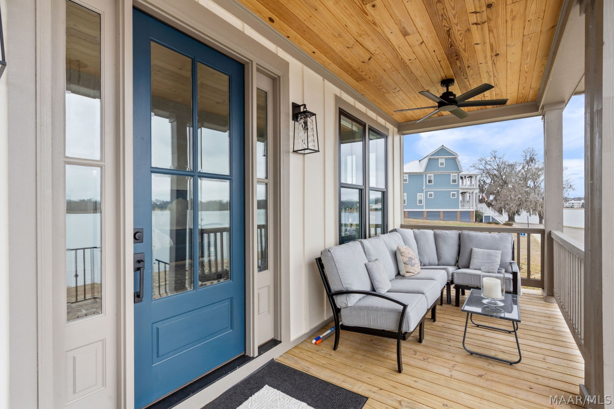 Perfectly positioned on the corner of Lucky Lane and Lake Cameron Drive, this custom-built 2025 lakefront home captures panoramic water views that are simply unforgettable. From the front and side porches to the living room, dining area, and kitchen, nearly every main living space is framed by picture-perfect views of Lake Cameron, creating a daily scene that feels like a permanent vacation. Beautiful hardwood floors flow throughout the home’s main areas while the bedrooms and baths offer comfort and privacy in all the right places. The magazine-worthy kitchen is truly the heart of the home, featuring floor-to-ceiling cabinetry with exceptional storage, gorgeous countertops, and a stunning island accented by a quartz waterfall on both sides. A double oven range makes entertaining effortless, while the open-concept design ensures you never miss a sunset over the water. The luxurious primary suite is a private retreat with designer tile wall accents, lighted mirrors, a breathtaking shower, and a massive walk-in closet that offers space for organization. Upstairs, a spacious bonus loft provides flexible living space, complemented by two additional bedrooms and a beautifully appointed bath with impressive tile and countertop finishes. Thoughtful exterior upgrades include professionally designed landscaping, a charming courtyard-style patio in the side yard, irrigation system, rain gutters, and spacious exterior storage. Move-in ready and practically new, this home offers a rare opportunity to own waterfront property at The Waters at an exceptional value—truly priced to sell and nearly impossible to replicate at this price point. Living at The Waters means embracing a lifestyle unlike any other, with access to lakes for fishing and boating, swimming pools, walking trails, pickleball and tennis courts, parks and greenspaces, plus a vibrant town center with civic spaces and local businesses. This is more than a home—it’s a front-row seat to lakefront living at its finest.