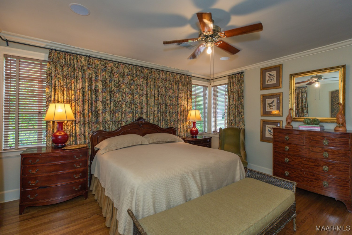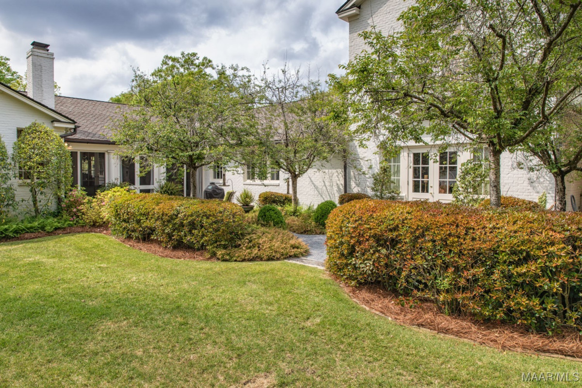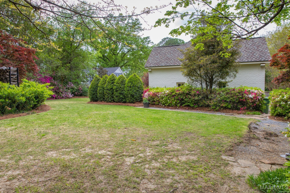 Stunning 5 bedroom Edgewood home with high quality professionally designed spaces, custom details, exquisite outdoor living areas and gorgeous landscaping front to back with well fed irrigation. Two major renovations/additions by current owners have resulted in an expansive kitchen, family room with heart pine beams/ceiling and wood burning fireplace, adjacent office/butlers pantry/utility area, 2nd floor bedroom, exercise room, office and storage space, wonderful screened in porch with wood burning fireplace, rear carport/garage and much more. Lovely tiered entrance from private parking pad(4 spaces) with large granite pavers. Gracious living room with floor to ceiling windows and fireplace. Dining room flows beautifully into rear screened in porch. Chef’s kitchen features work island, custom cabinetry, SUB ZERO fridge w/separate freezer drawers, Thermador gas range, DACOR oven, prep sink and adjacent butler’s pantry. Easy access to screened in porch from kitchen. Powder room and steam shower in hallway leading to a magnificent den. Tons of work space and storage between the butler’s pantry, oversized laundry and adjacent office. First floor primary bedroom and 3 guest bedrooms downstairs, each with en suite baths. Well designed 2nd floor includes an office with large walk in closet and custom side table, bedroom # 5, exercise room and abundant storage. Pocket doors provide privacy for bedroom and office. Rear patio off porch with beautiful garden, firepit/grill, and storage shed. This turnkey home also provides a generator, 2 tankless water heaters, invisible fence and security systems. A wonderful neighborhood near historic Cloverdale shops and restaurants and booming downtown Montgomery. Do not miss this fabulous, one of a kind home in the heart of Edgewood.