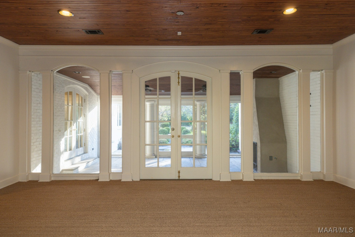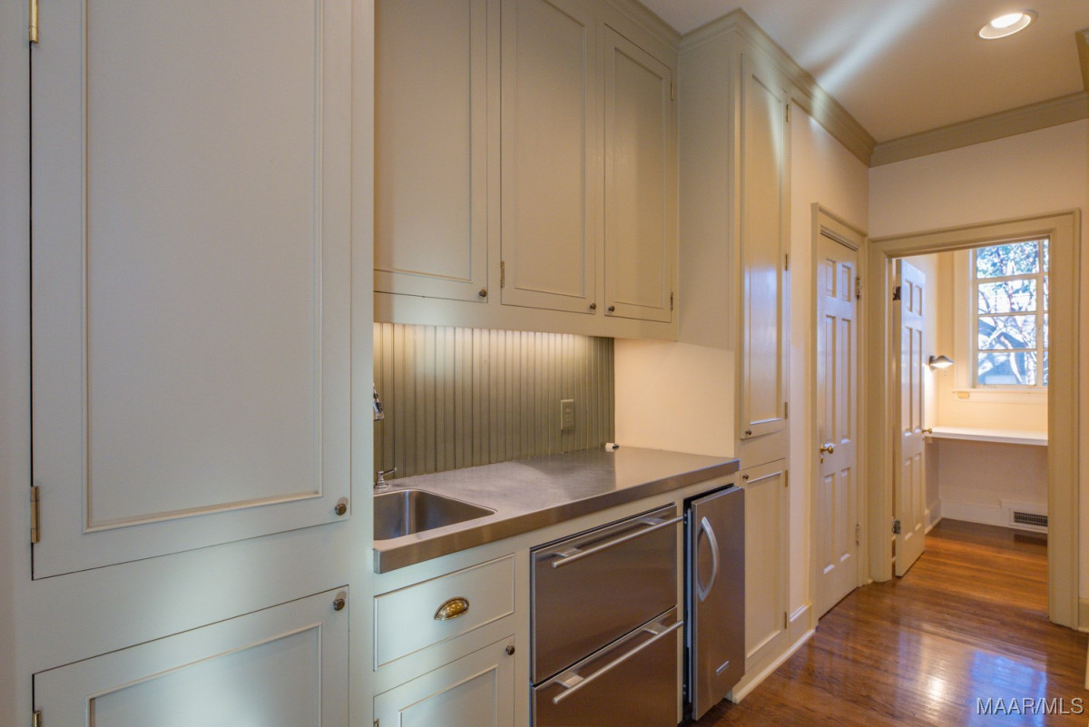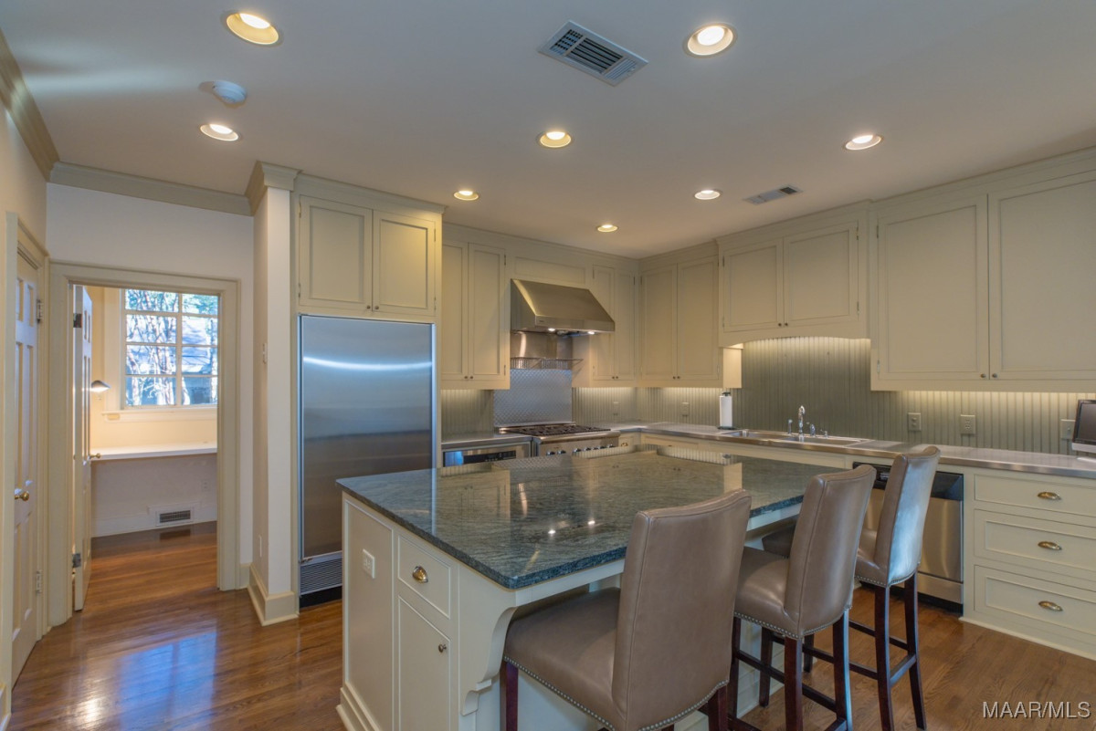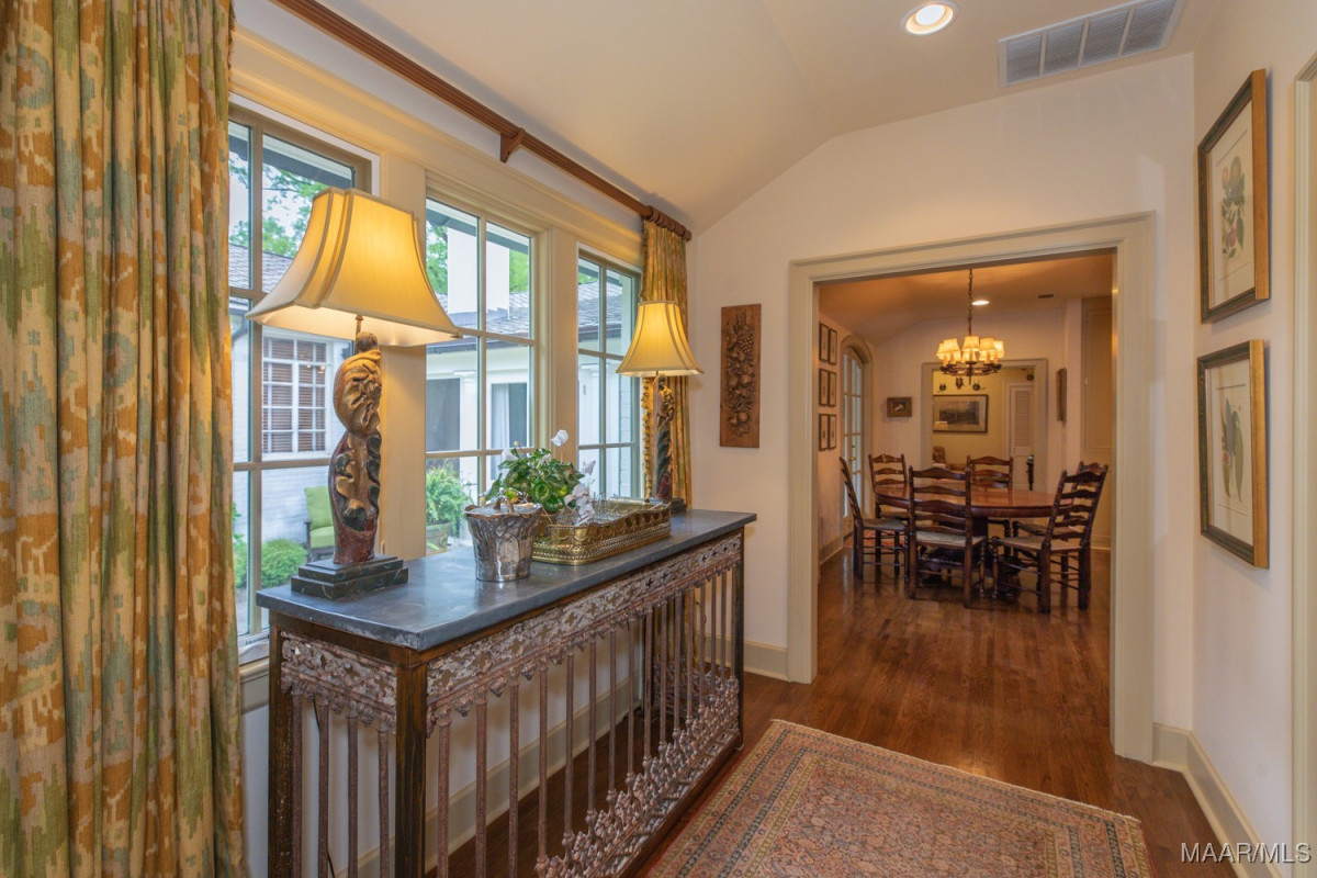 Stunning 5 bedroom Edgewood home with high quality professionally designed spaces, custom details, exquisite outdoor living areas and gorgeous landscaping front to back with well fed irrigation. Two major renovations/additions by current owners have resulted in an expansive kitchen, family room with heart pine beams/ceiling and wood burning fireplace, adjacent office/butlers pantry/utility area, 2nd floor bedroom, exercise room, office and storage space, wonderful screened in porch with wood burning fireplace, rear carport/garage and much more. Lovely tiered entrance from private parking pad(4 spaces) with large granite pavers. Gracious living room with floor to ceiling windows and fireplace. Dining room flows beautifully into rear screened in porch. Chef’s kitchen features work island, custom cabinetry, SUB ZERO fridge w/separate freezer drawers, Thermador gas range, DACOR oven, prep sink and adjacent butler’s pantry. Easy access to screened in porch from kitchen. Powder room and steam shower in hallway leading to a magnificent den. Tons of work space and storage between the butler’s pantry, oversized laundry and adjacent office. First floor primary bedroom and 3 guest bedrooms downstairs, each with en suite baths. Well designed 2nd floor includes an office with large walk in closet and custom side table, bedroom # 5, exercise room and abundant storage. Pocket doors provide privacy for bedroom and office. Rear patio off porch with beautiful garden, firepit/grill, and storage shed. This turnkey home also provides a generator, 2 tankless water heaters, invisible fence and security systems. A wonderful neighborhood near historic Cloverdale shops and restaurants and booming downtown Montgomery. Do not miss this fabulous, one of a kind home in the heart of Edgewood.