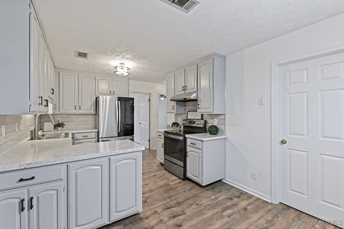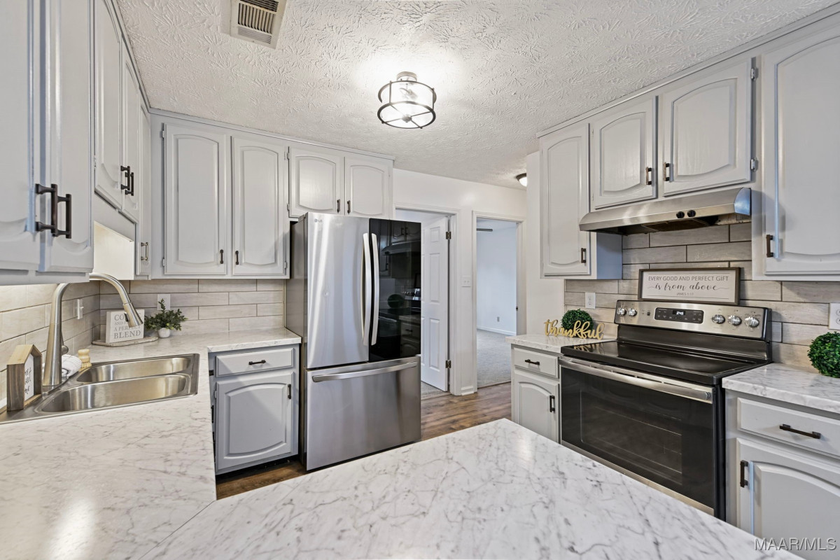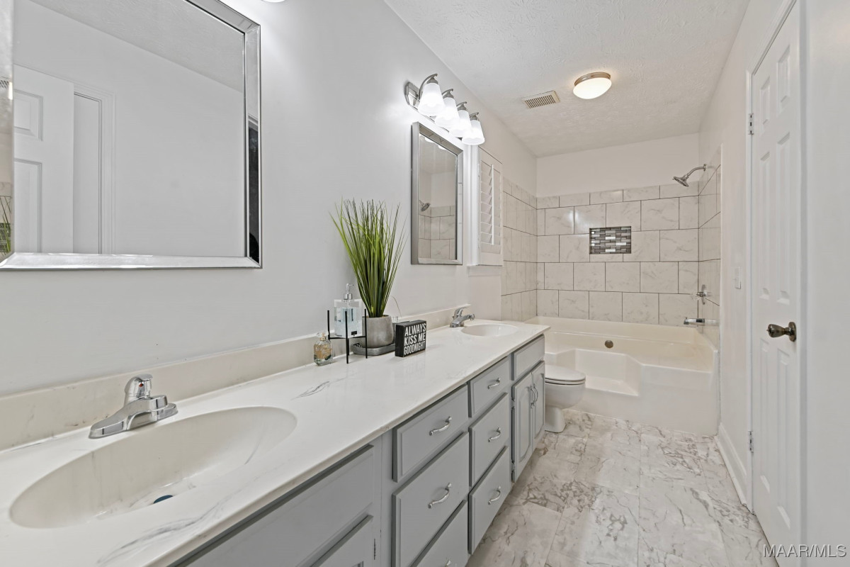 Back on the market due to no fault of the sellers. Welcome to this beautifully updated 3 bedroom, 2 full bathroom home with an oversized FOURTH bedroom, located in the established Deerfield neighborhood and offers over 2,400 sqft of thoughtful design. This home is one of the largest homes in the neighborhood featuring multiple versatile living areas. Step inside the inviting foyer, where you are greeted by a formal living room and dining room—an elegant backdrop for both everyday living and memorable gatherings. Continue into the den which showcases a tray ceiling and a cozy fireplace, creating a warm and welcoming atmosphere. Throughout the home, you will appreciate the custom high-end wood blinds that bring a timeless sense of sophistication. The kitchen has been tastefully renovated with freshly painted cabinetry, stylish countertops, a chic tile backsplash, and updated appliances—seamlessly blending modern convenience with classic design. The primary suite is serene, complete with a walk-in closet, NEW mirrors, dual vanities, and a relaxing garden tub/shower combination. The split-bedroom floor plan ensures privacy, with secondary bedrooms located on the opposite side of the home. Beyond the den, discover the Florida room that can be used as a versatile flex space offering endless possibilities—whether as a playroom, home gym, creative studio, man-cave, lounge space, or a workspace for a small business. In addition, the BONUS room provides exceptional flexibility, making it ideal for in-laws, a retreat for teenagers, or simply an additional living space. Exit the Florida room onto the screened-in porch where you can relax while overlooking the backyard. With a new roof, and new flooring this home combines space, style, and convenience in one outstanding offering. The HVAC system has been recently serviced to ensure optimal efficiency. Perfectly situated just minutes from local dining, shopping, Maxwell Air Force Base, and Gunter Air Force Base.
