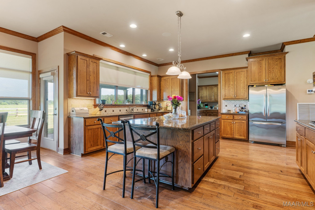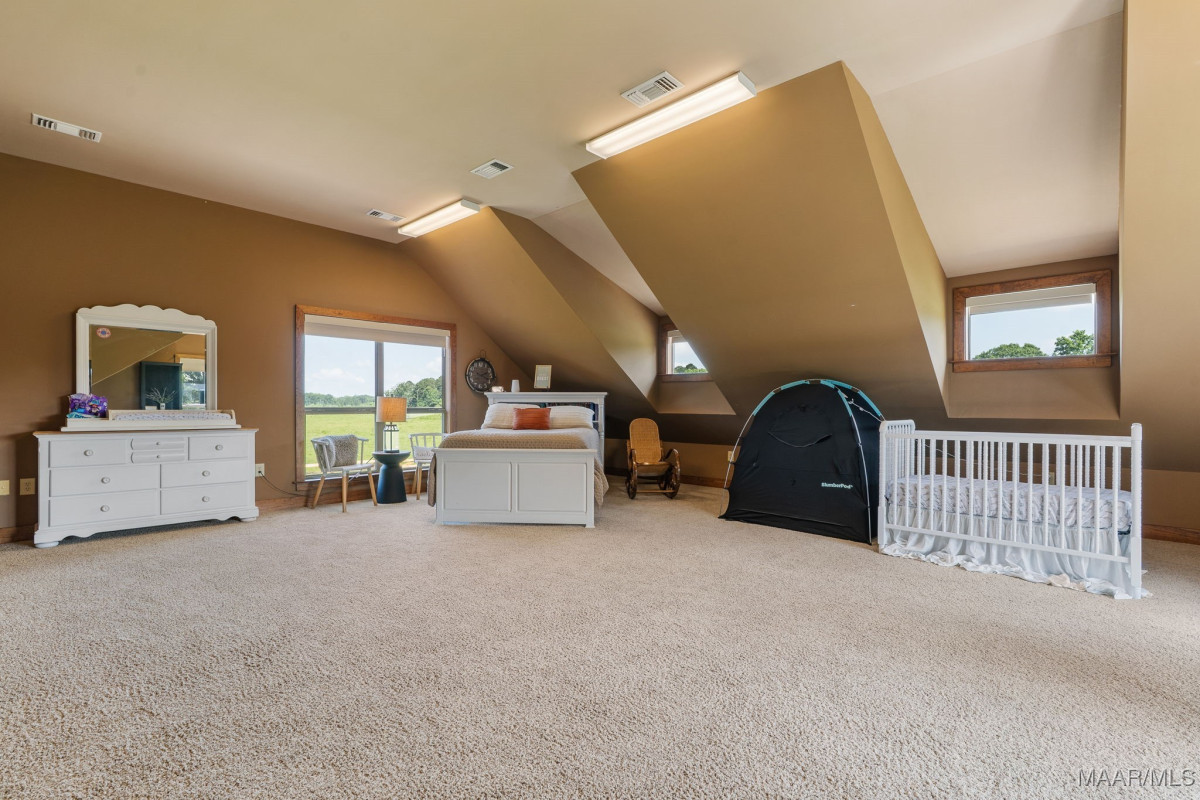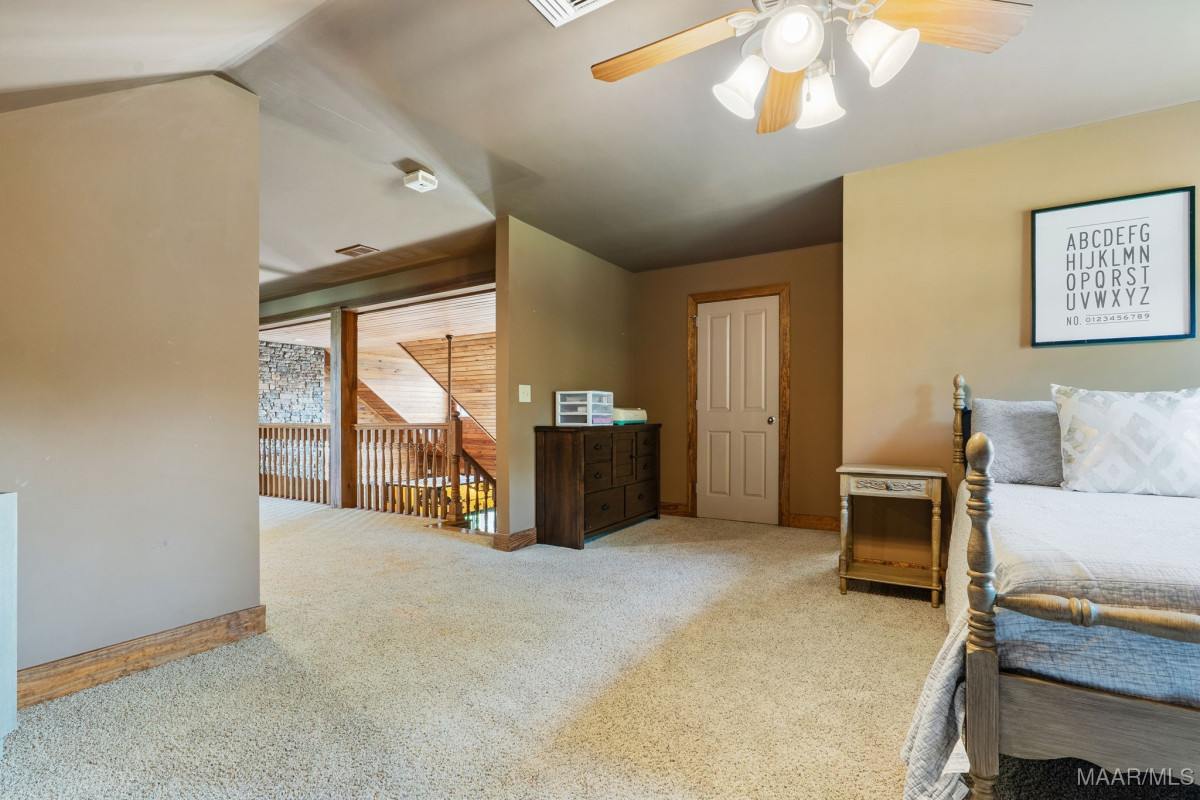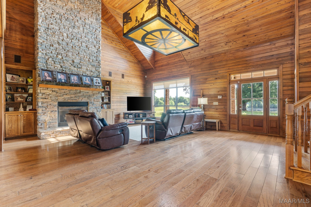 Fabulous ranch home on about 15 acres! Greet your guests as they step on to the brick and stone front porch. Enter the massive great room with tongue and groove walls and 25 ft vaulted ceiling. Hard wood floors and stone fireplace. Stay here a minute to take in all of the features of this room. Custom light fixtures, built in shelving, wall of windows. The open dining room boasts a 10 ft custom, lighted china cabinet, decorator's closet, 12 ft ceilings, and plenty of room for family dining. Feast your eyes on this kitchen with a very impressive, granite topped work island with tons of storage and room for chairs or stools. 5 burner gas cook top with pot filler. Double wall ovens, electric. Built in microwave. Walk in pantry. A tremendous amount of counter and cabinet space. Recessed and pendant lighting. There is casual/breakfast room and desk space in the corner with tons of windows for beautiful views and adjacent sunroom flooded with natural light. The enormous master suite with sleeping and sitting area. His and Her dressing areas with walk in closets, 2 vanity areas, jetted tub, and a separate shower afford this homeowner a luxurious space for dressing each morning. Beautiful tile work and fixtures. Wait until you see this laundry room! Lots of counter and cabinet space, built in ironing board, sink, hanging area, room for an additional refrigerator or freezer. On the other side of the house are 2 large guests rooms that share a walk through bathroom. Make sure you click through the photos. Upstairs you will find a large loft, game room, full bath and 4th bedroom with a private balcony and stunning view. Continue through the loft into the remarkable attic storage space. Keep walking. Open the next door to the Bonus room. This space over the carport can be accessed from the upstairs or from the carport. The outside living space is amazing with covered and screened porches, acreage, 2 ponds, tractor shed and workshop.