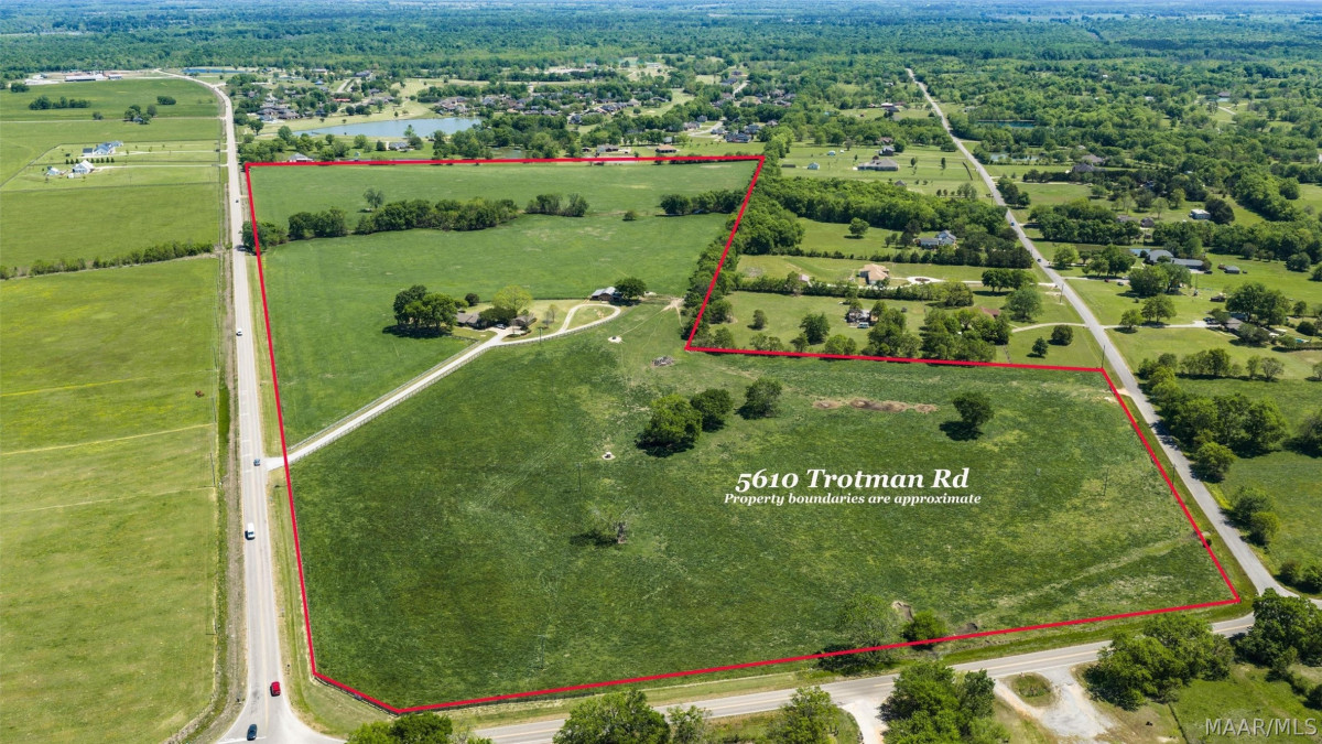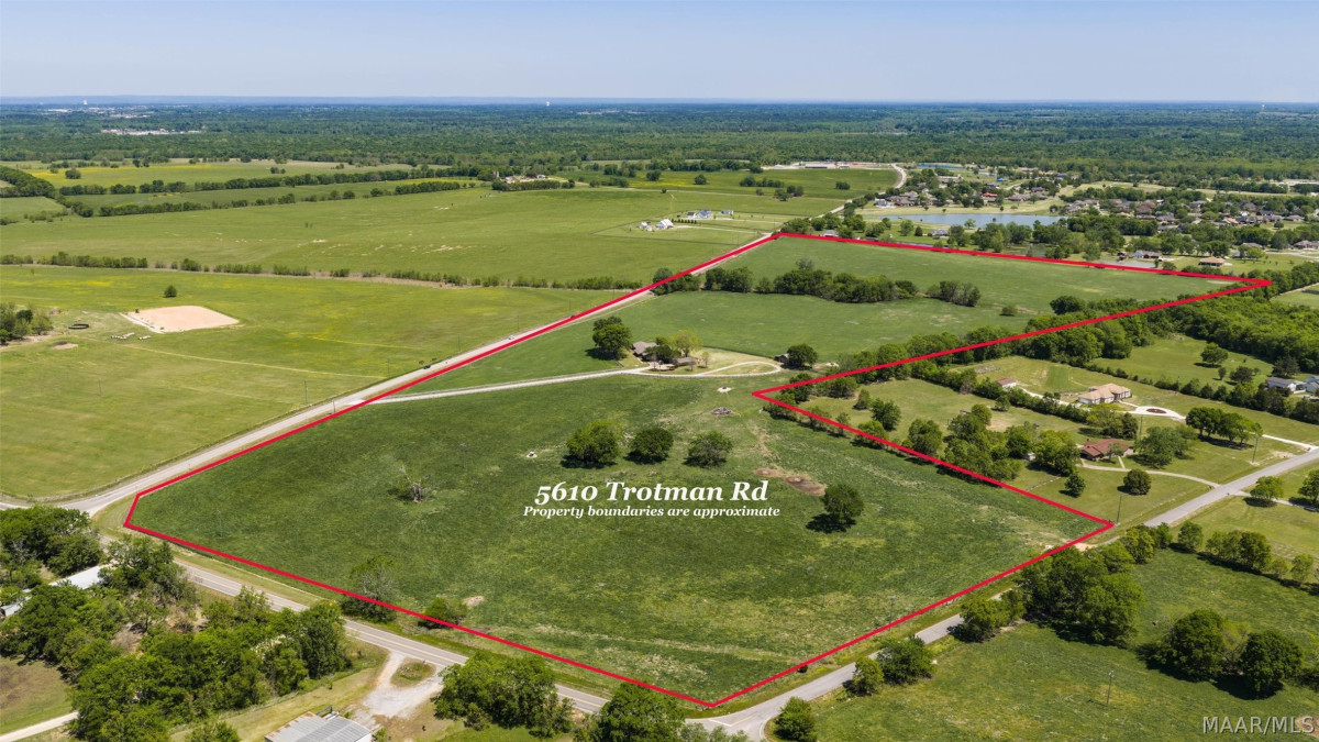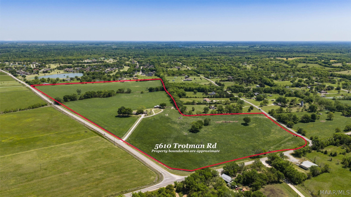 Set on more than 75 acres of gently rolling land on both Trotman Road and Woodley Road, this exceptional estate represents one of the most versatile and sought-after opportunities to come available in the Town of Pike Road. Properties of this scale, condition, and strategic positioning rarely come to market. Its location places it directly in the natural growth path stretching from East Montgomery toward the rapidly expanding Hope Hull industrial corridor, making it uniquely suited for buyers seeking a private homestead, a productive working cattle farm, or a forward-thinking land investment with significant future upside. As you approach the residence, the setting of mature landscaping, wide-open pastures, and thoughtfully maintained grounds frame the home in a way that feels welcoming. At the heart of the home is an expansive kitchen with custom heart pine cabinetry, a walk-in pantry, double ovens, cooktop, and a Scotsman ice maker. Large work island with seating anchors the room, while a cozy keeping area with fireplace brings everyone together. Just off the kitchen is a flex room with storage space and a spacious laundry room with sink and cabinetry. The den offers a warm retreat with built-in bookcases and French doors that open to the large covered patio. This home offers five bedrooms, three with private baths. One exceptionally large bedroom would make the perfect playroom, media room or additional den. Two-car garage with attached workroom. The yard is meticulously maintained with irrigation supported by a separate well. 52’x40’ Western Cedar barn. The property is currently a working cattle operation, offering immediate agricultural use or the opportunity to expand into equestrian, hobby farming, or agritourism ventures. With its dual road frontage this land holds potential for exceptional long-term value. Whether you envision a generational family estate, a productive farm, or a strategic investment, 5610 Trotman Road stands ready to meet the moment.