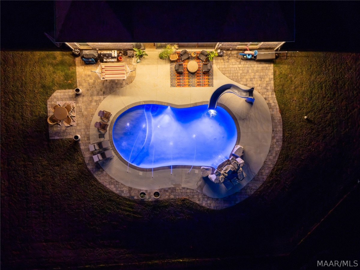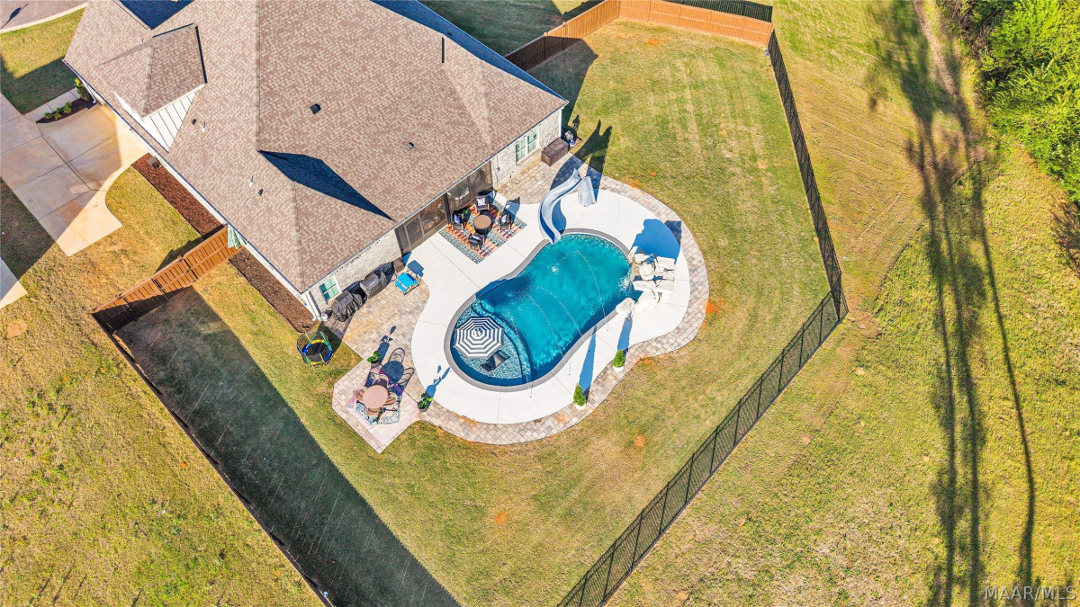Welcome to this stunning, near-new 2022 home in the highly desirable Glennbrooke neighborhood of Prattville! This beautifully upgraded 5-bedroom, 4-bathroom Dogwood II offers 3,705 square feet of exceptional living space on a premium lot with no rear neighbors. From the moment you arrive, you’ll appreciate the thoughtful design and high-end finishes. The open-concept layout flows effortlessly, featuring calming, custom colors, durable LVP flooring, and soft plush carpet in the bedrooms. A dedicated library with custom built-in oak bookshelves creates a warm, inviting retreat perfect for reading or displaying your favorite collection. The chef-worthy kitchen stands out with its striking copper backsplash, gas cook-top, modern finishes, and generous space for both cooking and entertaining. The split floor plan ensures privacy, highlighted by a luxurious primary suite complete with a freestanding soaking tub, oversized walk-in shower, and an extra-large walk-in closet. Head upstairs where a private guest suite provides ideal space for visitors or multi-generational living. Outside, your personal backyard oasis awaits. The expansive patio surrounds a custom Gunite pool featuring a beautiful waterfall, grotto, PebbleTec pool coating, and one of the fastest slides in the Southeast. This backyard is perfect for summer fun and entertaining. Just steps away, a hot tub on the screened porch offers year-round relaxation and comfort. Additional highlights include four-sided brick construction, a 2-car garage, and countless thoughtful upgrades that make this home truly move-in ready. This exceptional Glennbrooke property checks every box and more. Don’t miss your chance to call this one home, schedule your private showing today!
