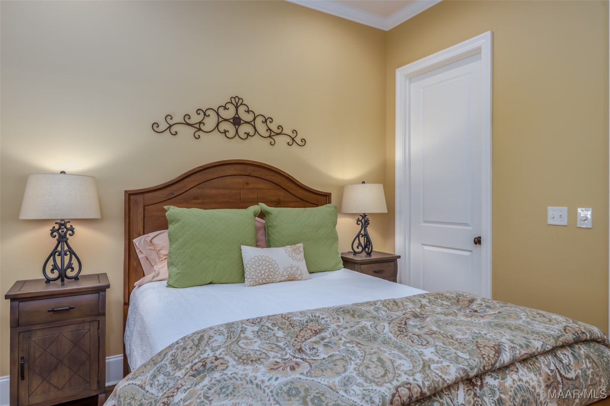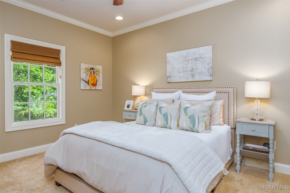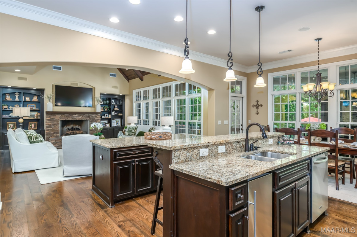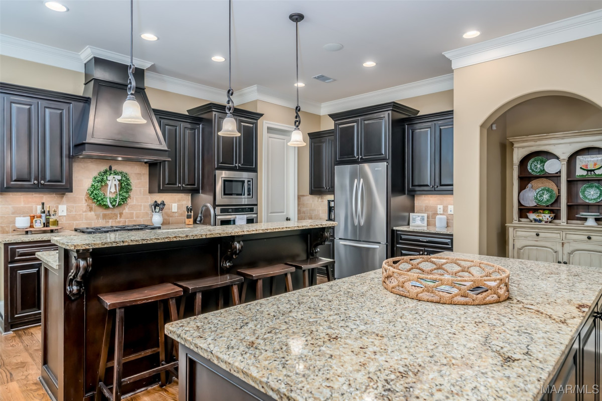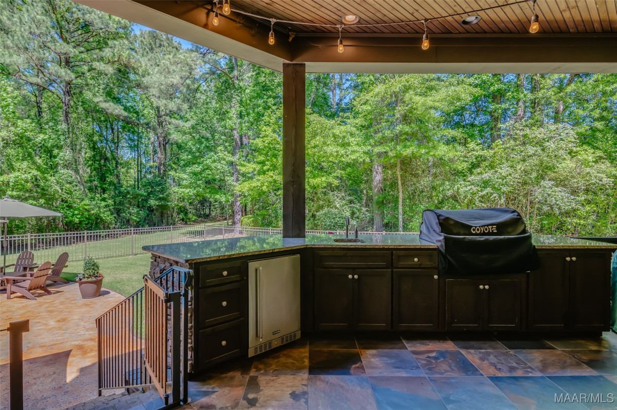 This home, CUSTOM BUILT by Nathan Watson & nestled on 2.55 acres, is LOADED with high-end finishes & custom touches that truly set it apart! Coming up the private driveway, you are greeted by professional landscaping & a PEACEFUL setting. The front porch has a vaulted tongue & groove ceiling, exposed wood beams & elegant double front doors, creating a grand & welcoming entrance. Step into the foyer, with a spacious Dining Room to one side-perfect for hosting gatherings or formal meals. On the opposite side is a large office, or optional library/sitting room, featuring custom built-ins. The Great Room boasts a tongue & groove ceiling, oversized stacked stone fireplace with expansive windows & a GORGEOUS view of the pool & back yard. The kitchen is a CHEF'S DREAM with KitchenAid Professional Series appliances, double ovens, six-burner gas stove, TWO large islands with additional storage, pellet ice machine, pull-out spice racks, & walk-in pantry. The Breakfast Room is OPEN to the Kitchen & also has AMAZING views. The primary suite is located on one side of the home & includes a sitting area with access to the covered back patio. The primary bath offers a true spa-like experience with a soaking tub, separate shower, double vanities & TWO closets with built ins. A secondary bedroom is also located downstairs, complete with an en suite bath & access to the back patio. Head upstairs where you'll find TWO guest bedrooms, EACH with a private bath. Delight in the MASSIVE bonus room with a connected sitting area. The outdoor living space is AMAZING with a HUGE covered porch with tile flooring, outdoor fireplace, built-in grill, sink, refrigerator, & granite countertops. Enjoy the kidney-shaped POOL with scored concrete pad & iron gate. Other features: surround sound, security system, underground sprinklers, drop zone, laundry room with sink, tankless water heaters. Also find crown molding, bull-nosed corners, foam insulation & 3 car garage. Easily zoned in to Pike Road School
