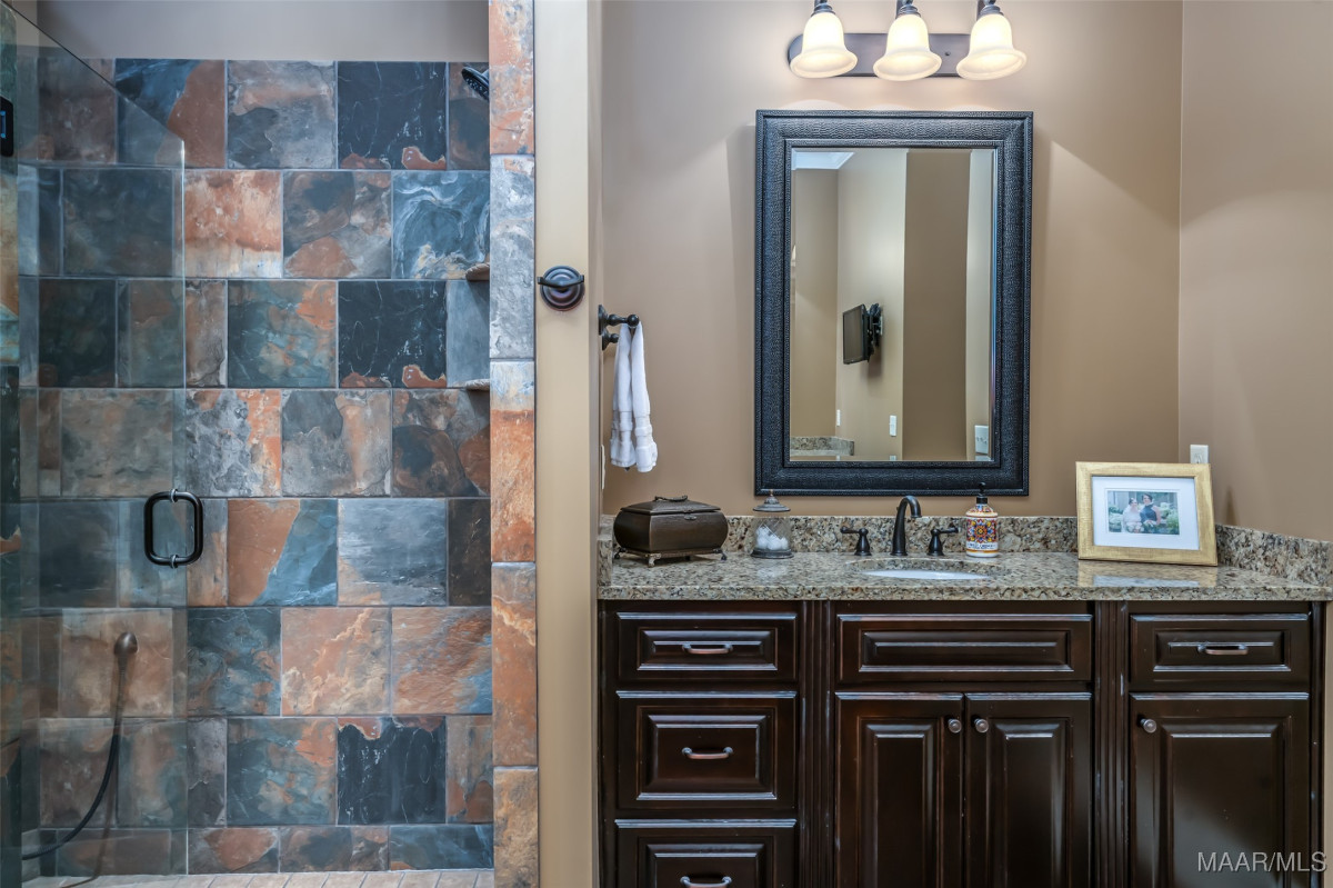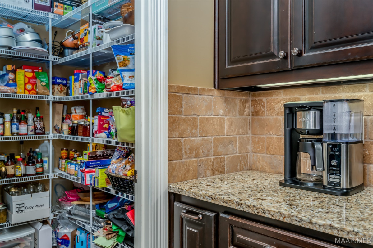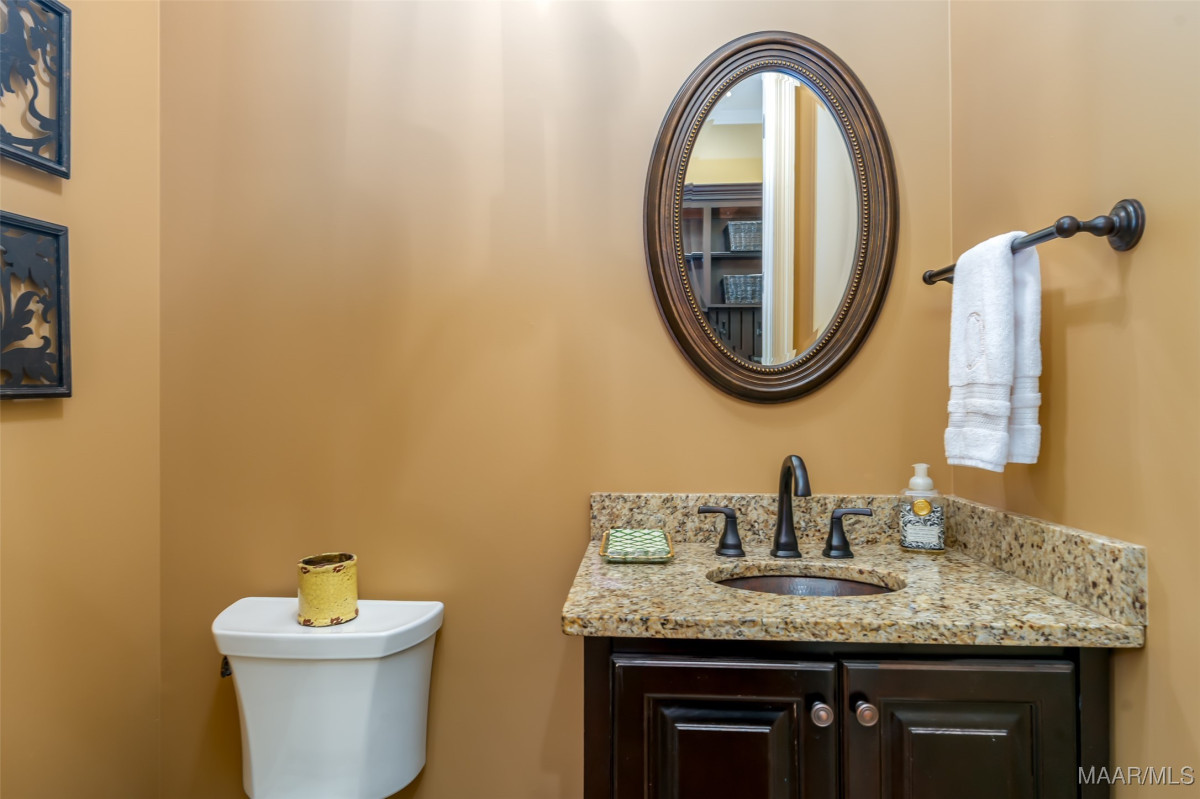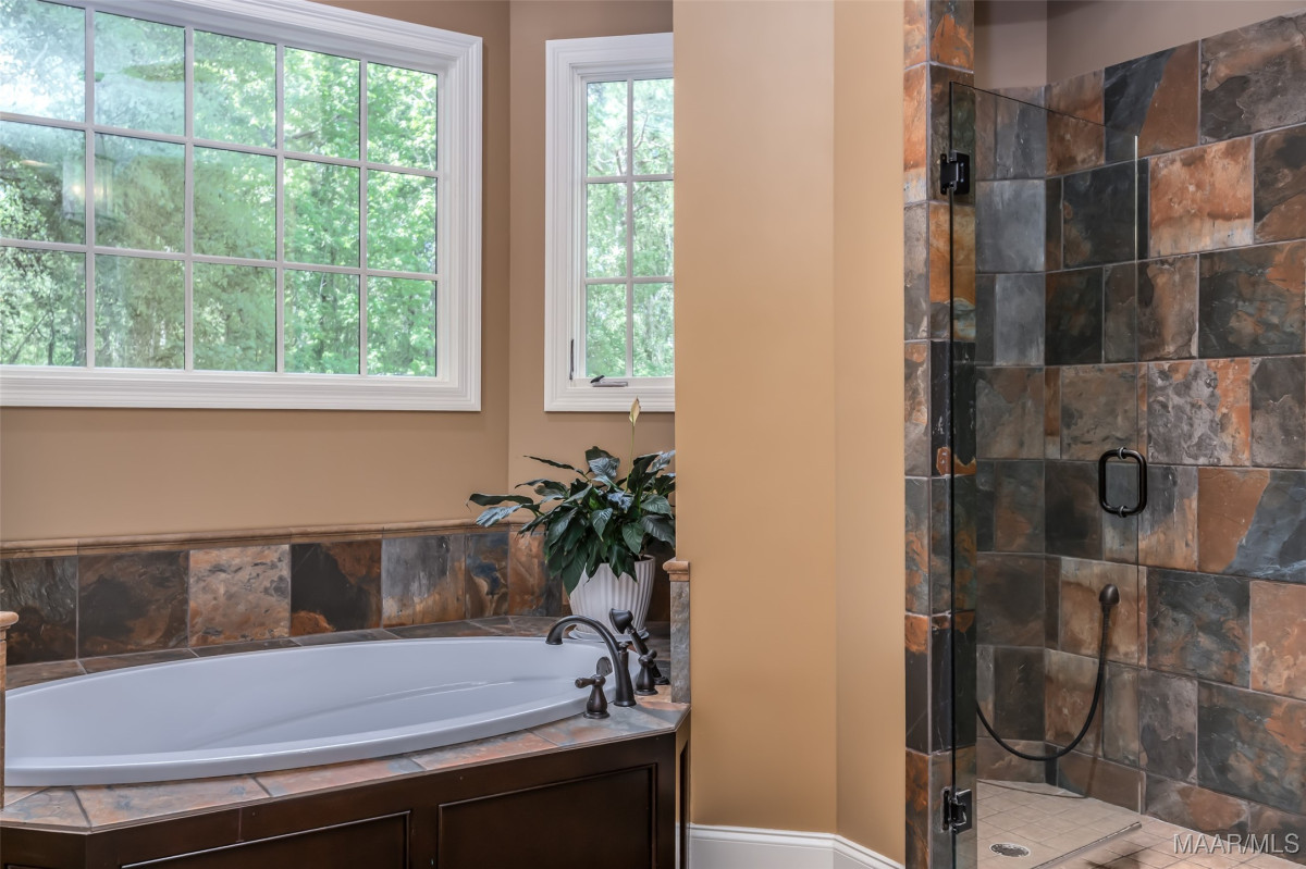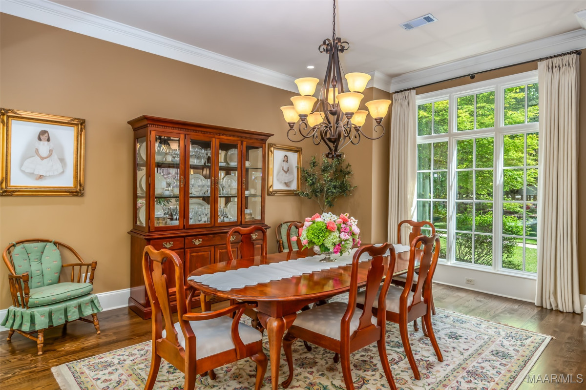 This home, CUSTOM BUILT by Nathan Watson & nestled on 2.55 acres, is LOADED with high-end finishes & custom touches that truly set it apart! Coming up the private driveway, you are greeted by professional landscaping & a PEACEFUL setting. The front porch has a vaulted tongue & groove ceiling, exposed wood beams & elegant double front doors, creating a grand & welcoming entrance. Step into the foyer, with a spacious Dining Room to one side-perfect for hosting gatherings or formal meals. On the opposite side is a large office, or optional library/sitting room, featuring custom built-ins. The Great Room boasts a tongue & groove ceiling, oversized stacked stone fireplace with expansive windows & a GORGEOUS view of the pool & back yard. The kitchen is a CHEF'S DREAM with KitchenAid Professional Series appliances, double ovens, six-burner gas stove, TWO large islands with additional storage, pellet ice machine, pull-out spice racks, & walk-in pantry. The Breakfast Room is OPEN to the Kitchen & also has AMAZING views. The primary suite is located on one side of the home & includes a sitting area with access to the covered back patio. The primary bath offers a true spa-like experience with a soaking tub, separate shower, double vanities & TWO closets with built ins. A secondary bedroom is also located downstairs, complete with an en suite bath & access to the back patio. Head upstairs where you'll find TWO guest bedrooms, EACH with a private bath. Delight in the MASSIVE bonus room with a connected sitting area. The outdoor living space is AMAZING with a HUGE covered porch with tile flooring, outdoor fireplace, built-in grill, sink, refrigerator, & granite countertops. Enjoy the kidney-shaped POOL with scored concrete pad & iron gate. Other features: surround sound, security system, underground sprinklers, drop zone, laundry room with sink, tankless water heaters. Also find crown molding, bull-nosed corners, foam insulation & 3 car garage. Easily zoned in to Pike Road School