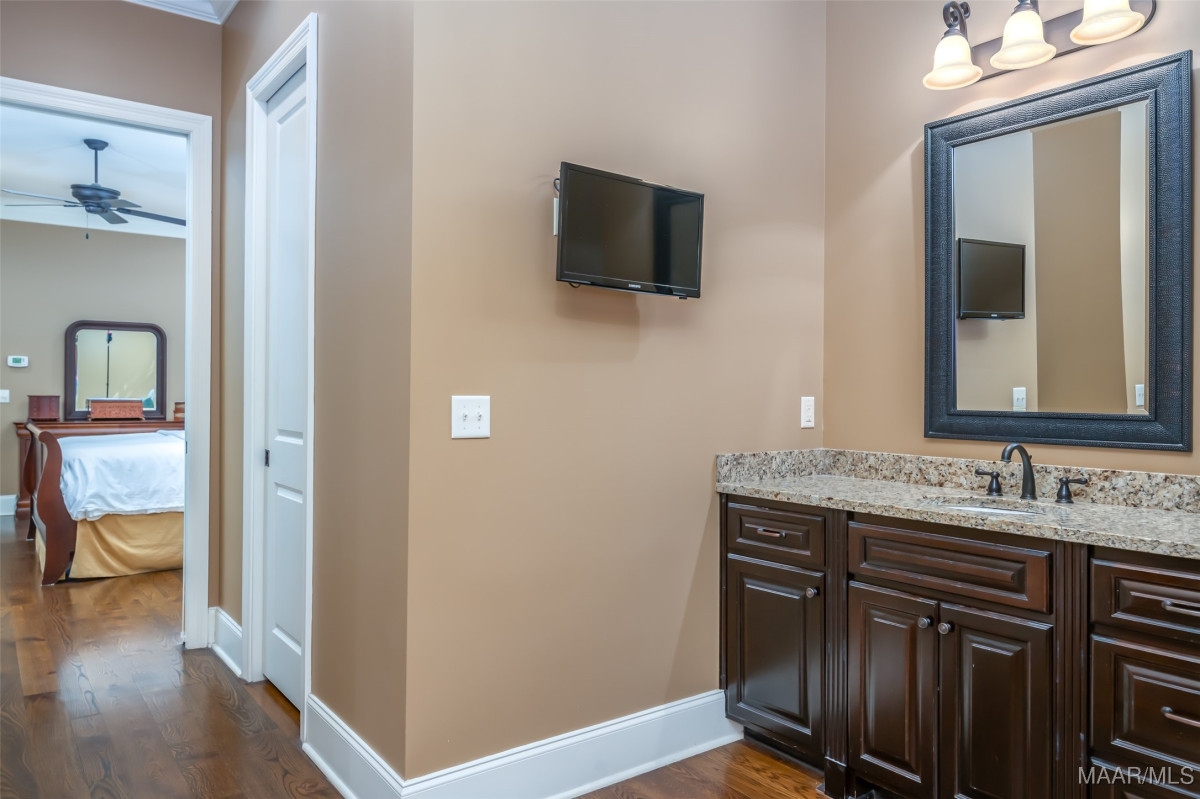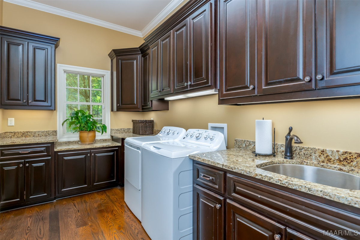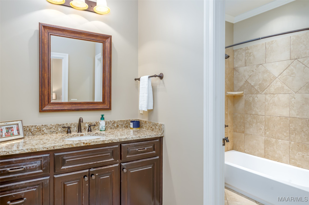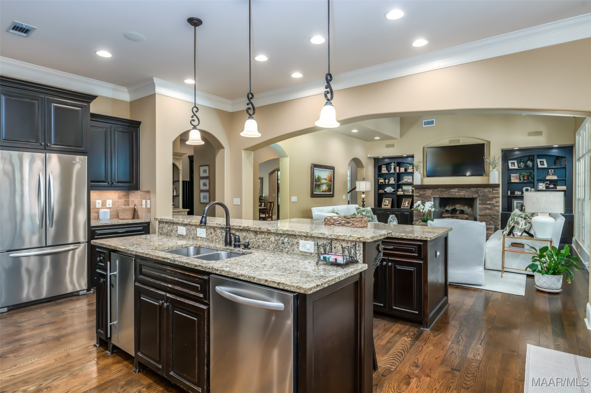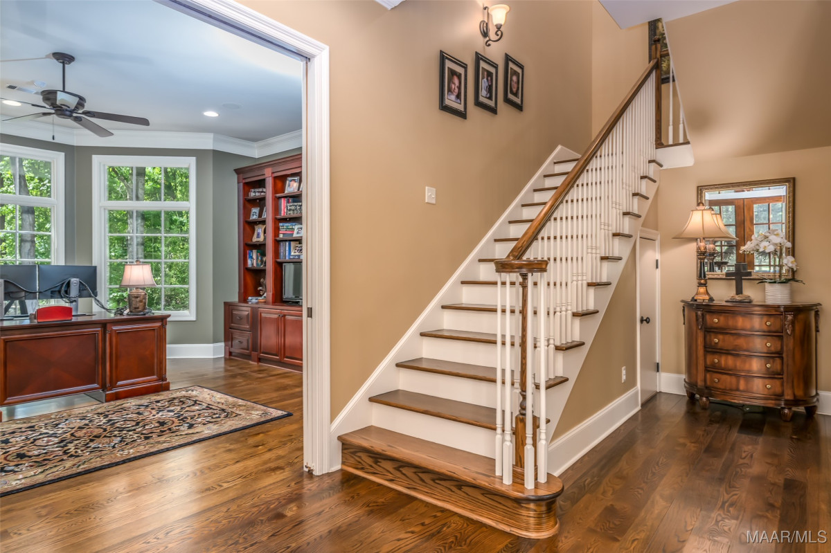 This home, CUSTOM BUILT by Nathan Watson & nestled on 2.55 acres, is LOADED with high-end finishes & custom touches that truly set it apart! Coming up the private driveway, you are greeted by professional landscaping & a PEACEFUL setting. The front porch has a vaulted tongue & groove ceiling, exposed wood beams & elegant double front doors, creating a grand & welcoming entrance. Step into the foyer, with a spacious Dining Room to one side-perfect for hosting gatherings or formal meals. On the opposite side is a large office, or optional library/sitting room, featuring custom built-ins. The Great Room boasts a tongue & groove ceiling, oversized stacked stone fireplace with expansive windows & a GORGEOUS view of the pool & back yard. The kitchen is a CHEF'S DREAM with KitchenAid Professional Series appliances, double ovens, six-burner gas stove, TWO large islands with additional storage, pellet ice machine, pull-out spice racks, & walk-in pantry. The Breakfast Room is OPEN to the Kitchen & also has AMAZING views. The primary suite is located on one side of the home & includes a sitting area with access to the covered back patio. The primary bath offers a true spa-like experience with a soaking tub, separate shower, double vanities & TWO closets with built ins. A secondary bedroom is also located downstairs, complete with an en suite bath & access to the back patio. Head upstairs where you'll find TWO guest bedrooms, EACH with a private bath. Delight in the MASSIVE bonus room with a connected sitting area. The outdoor living space is AMAZING with a HUGE covered porch with tile flooring, outdoor fireplace, built-in grill, sink, refrigerator, & granite countertops. Enjoy the kidney-shaped POOL with scored concrete pad & iron gate. Other features: surround sound, security system, underground sprinklers, drop zone, laundry room with sink, tankless water heaters. Also find crown molding, bull-nosed corners, foam insulation & 3 car garage. Easily zoned in to Pike Road School