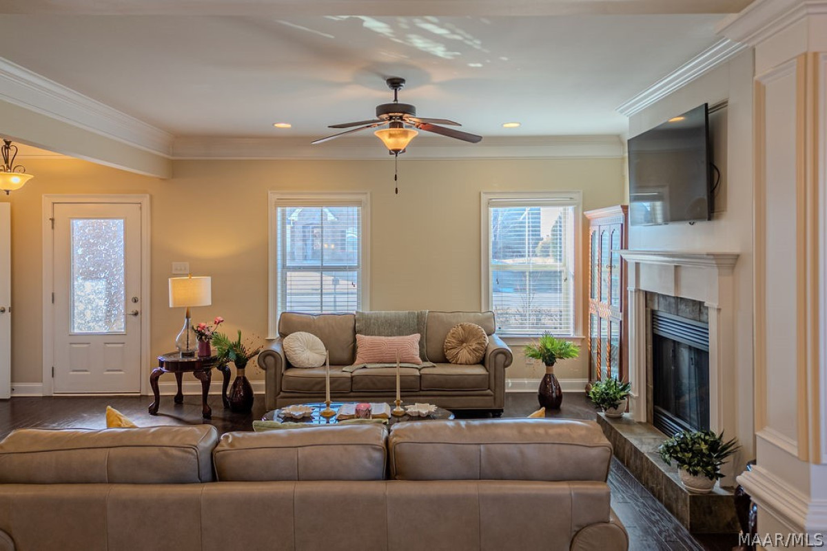 Enjoy outdoor living from the covered patio and porch in a neighborhood that offers a community pool and convenient access to shopping, dining, and Maxwell Air Force Base.