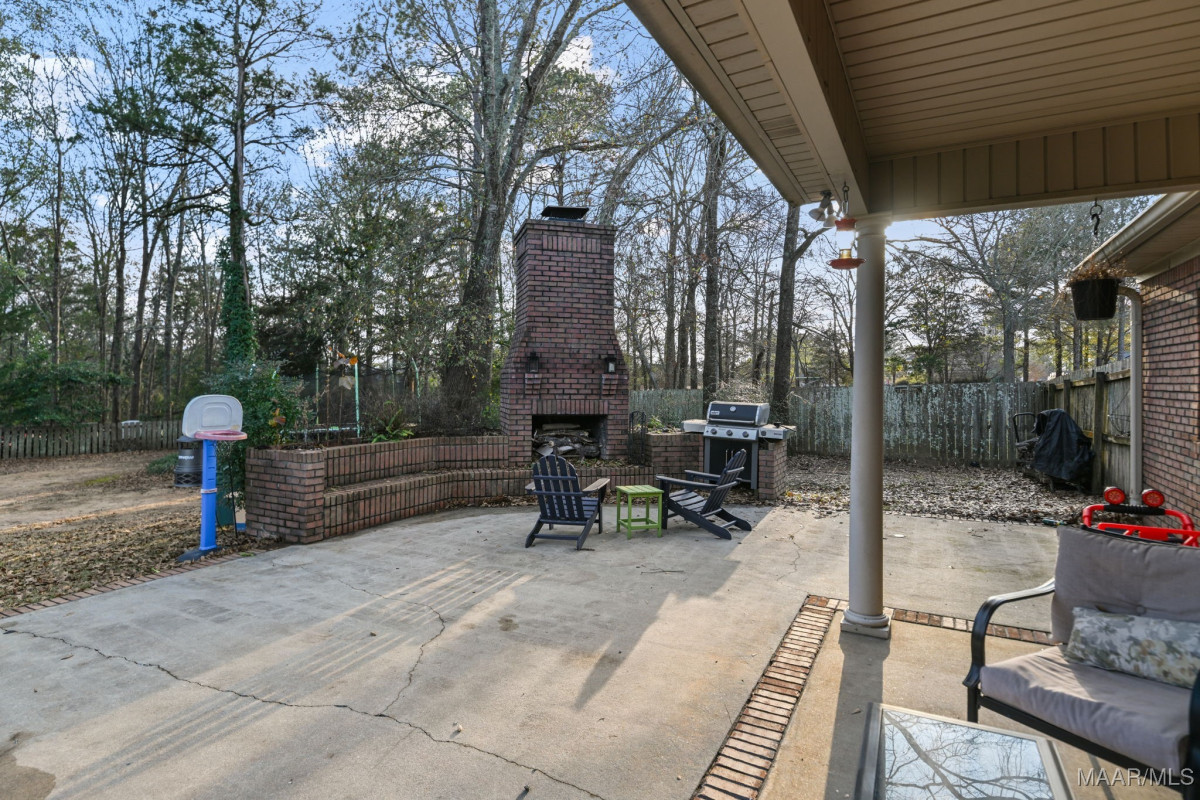 Welcome home to space, privacy, and a neighborhood built for real life. Tucked inside one of Millbrook’s most desirable communities, this 5-bedroom, 3-bath home sits on over 1.3 acres and offers the rare combination of room to spread out and a neighborhood that brings people together. Out back, you’ll find two fully fenced areas—a grassy yard perfect for play, pets, or entertaining, plus an additional fenced wooded area that adds privacy and a peaceful, nature-filled backdrop. Evenings are made easy around the outdoor fireplace, complete with built-in seating and planters, and there’s already a natural gas connection for your grill. Inside, the home is designed with families in mind. With five bedrooms and three full baths, everyone has their own space, including walk-in closets in the kids’ rooms and his-and-hers closets in the master. The primary suite features a jetted soaking tub, double shower with built-in bench, and a tray ceiling. Crown molding, plantation shutters on the front windows, and wooden blinds throughout add warmth and character, while the layout balances everyday comfort with room to host. You’ll love the eat-in kitchen for casual meals, bar seating for 2, and a formal dining room for special occasions, a pantry, and even a charming book nook—perfect for homework or quiet reading time. The laundry room is especially functional with counter space and a sink, and the floored attic provides excellent storage without sacrificing living space. Mature trees surround the home, offering shade and privacy, and the double-wide driveway adds convenience for busy households. Beyond the home itself, the neighborhood truly shines with sidewalks, a fishing pond, a park, and a video-monitored entrance, creating a safe, welcoming environment for all ages. All of this, just minutes from shopping, dining, schools, and everything Millbrook has to offer—this is the kind of place where families grow, memories are made, and neighbors feel like community.