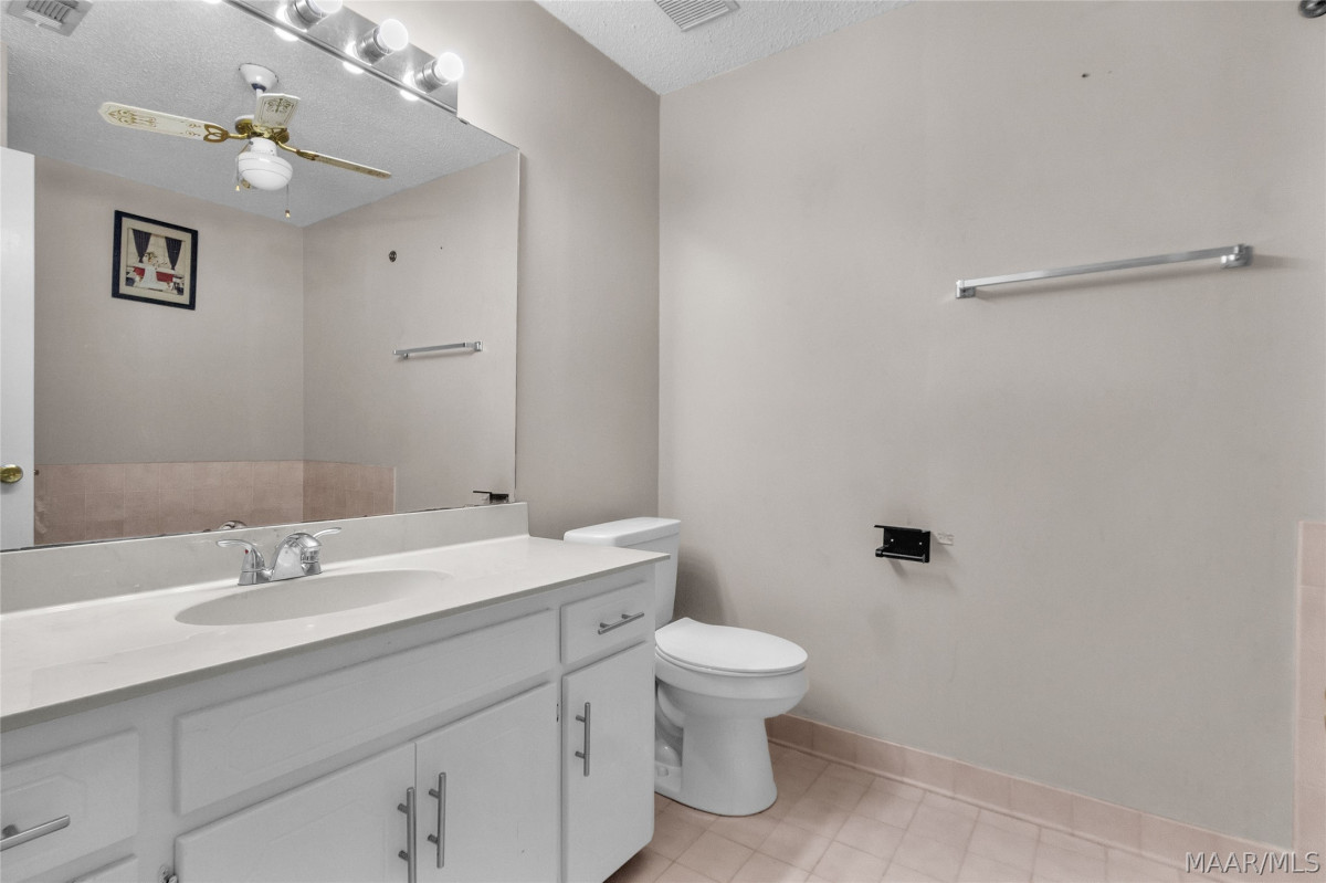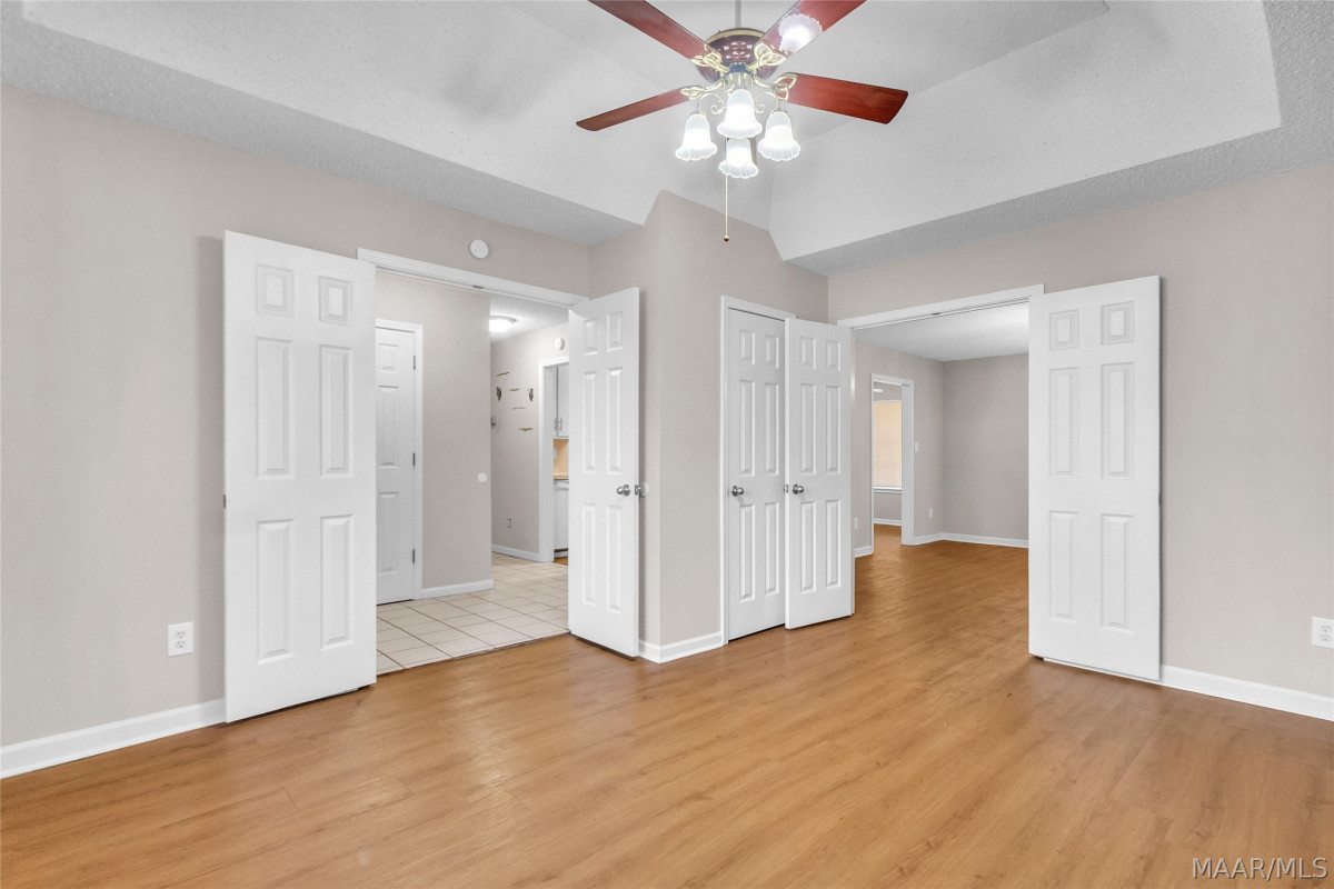 The primary suite is a true retreat, offering two closets, including a walk-in closet with built-in shelving. The primary bathroom features a relaxing garden tub and cultured marble countertops. The front bedroom includes its own walk-in closet and separate half bath, perfect for guests or added privacy.