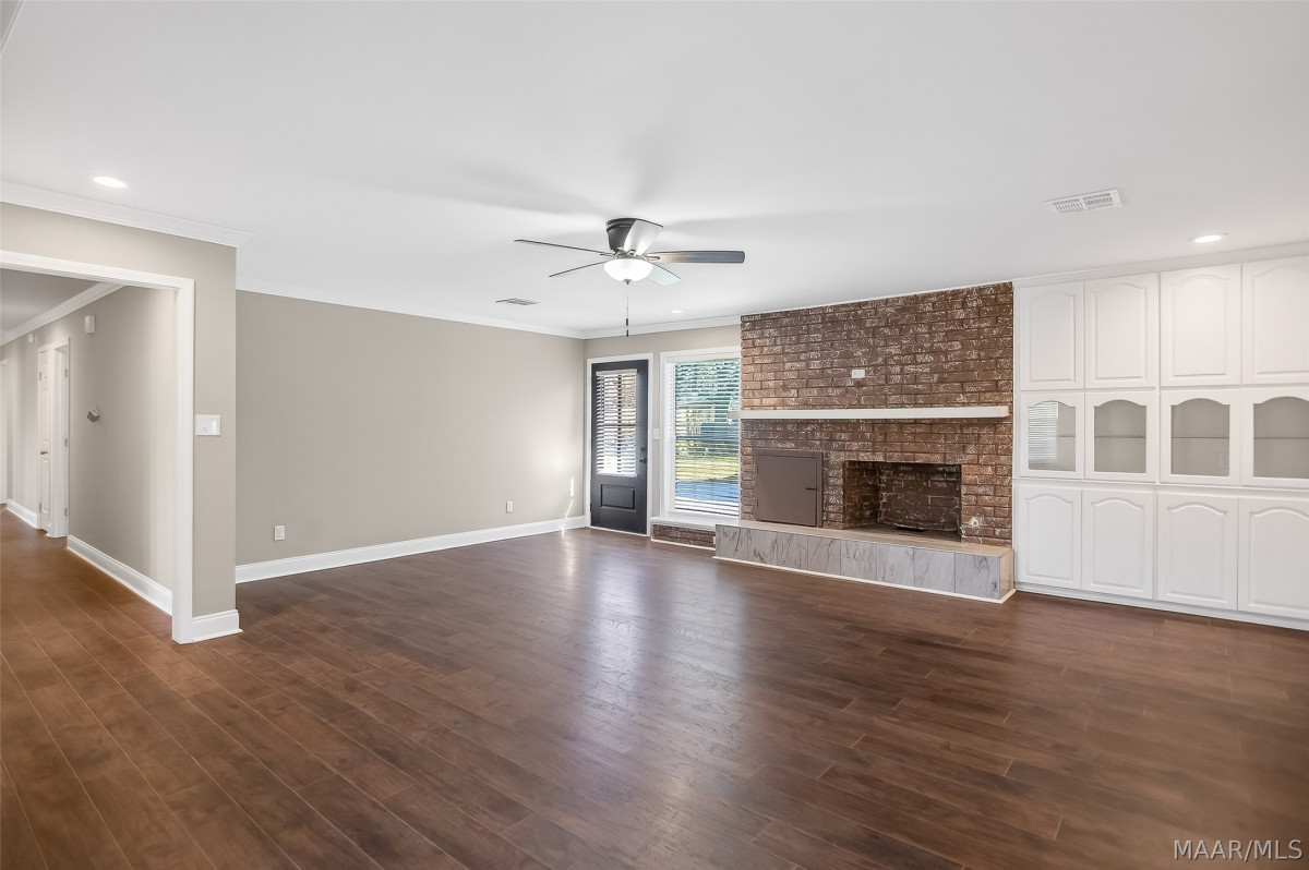 The expansive open-concept floor plan creates effortless flow, ideal for both elevated entertaining and everyday living. The heart of the home centers around a beautiful fireplace, anchoring the main living space with warmth and architectural charm. Natural light pours across the gleaming new floors, enhancing the home’s fresh, modern elegance.