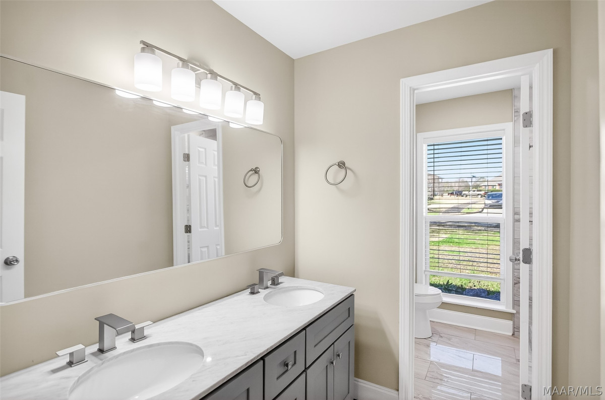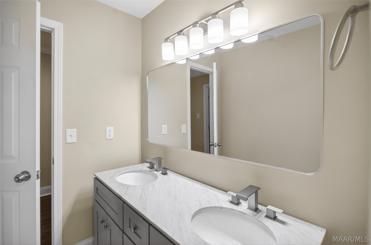 Every bathroom has been thoughtfully updated with tiled showers, modern sinks and new light fixtures blending luxury finishes with functional design.