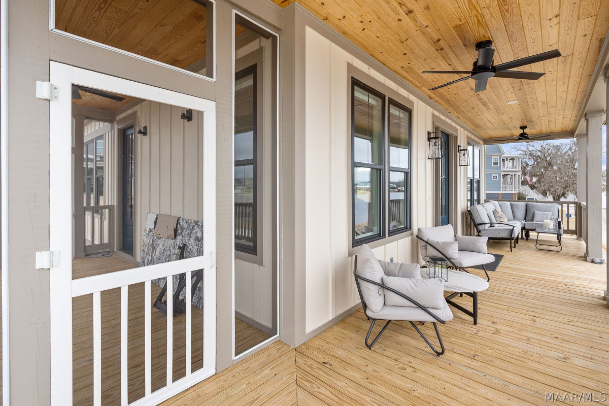 Perfectly positioned on the corner of Lucky Lane and Lake Cameron Drive, this custom-built 2025 lakefront home captures panoramic water views that are simply unforgettable. From the front and side porches to the living room, dining area, and kitchen, nearly every main living space is framed by picture-perfect views of Lake Cameron, creating a daily scene that feels like a permanent vacation. Beautiful hardwood floors flow throughout the home’s main areas while the bedrooms and baths offer comfort and privacy in all the right places. The magazine-worthy kitchen is truly the heart of the home, featuring floor-to-ceiling cabinetry with exceptional storage, gorgeous countertops, and a stunning island accented by a quartz waterfall on both sides. A double oven range makes entertaining effortless, while the open-concept design ensures you never miss a sunset over the water. The luxurious primary suite is a private retreat with designer tile wall accents, lighted mirrors, a breathtaking shower, and a massive walk-in closet that offers space for organization. Upstairs, a spacious bonus loft provides flexible living space, complemented by two additional bedrooms and a beautifully appointed bath with impressive tile and countertop finishes. Thoughtful exterior upgrades include professionally designed landscaping, a charming courtyard-style patio in the side yard, irrigation system, rain gutters, and spacious exterior storage. Move-in ready and practically new, this home offers a rare opportunity to own waterfront property at The Waters at an exceptional value—truly priced to sell and nearly impossible to replicate at this price point. Living at The Waters means embracing a lifestyle unlike any other, with access to lakes for fishing and boating, swimming pools, walking trails, pickleball and tennis courts, parks and greenspaces, plus a vibrant town center with civic spaces and local businesses. This is more than a home—it’s a front-row seat to lakefront living at its finest.