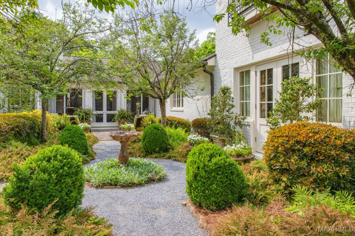 Stunning 5 bedroom Edgewood home with high quality professionally designed spaces, custom details, exquisite outdoor living areas and gorgeous landscaping front to back with well fed irrigation. Two major renovations/additions by current owners have resulted in an expansive kitchen, family room with heart pine beams/ceiling and wood burning fireplace, adjacent office/butlers pantry/utility area, 2nd floor bedroom, exercise room, office and storage space, wonderful screened in porch with wood burning fireplace, rear carport/garage and much more. Lovely tiered entrance from private parking pad(4 spaces) with large granite pavers. Gracious living room with floor to ceiling windows and fireplace. Dining room flows beautifully into rear screened in porch. Chef’s kitchen features work island, custom cabinetry, SUB ZERO fridge w/separate freezer drawers, Thermador gas range, DACOR oven, prep sink and adjacent butler’s pantry. Easy access to screened in porch from kitchen. Powder room and steam shower in hallway leading to a magnificent den. Tons of work space and storage between the butler’s pantry, oversized laundry and adjacent office. First floor primary bedroom and 3 guest bedrooms downstairs, each with en suite baths. Well designed 2nd floor includes an office with large walk in closet and custom side table, bedroom # 5, exercise room and abundant storage. Pocket doors provide privacy for bedroom and office. Rear patio off porch with beautiful garden, firepit/grill, and storage shed. This turnkey home also provides a generator, 2 tankless water heaters, invisible fence and security systems. A wonderful neighborhood near historic Cloverdale shops and restaurants and booming downtown Montgomery. Do not miss this fabulous, one of a kind home in the heart of Edgewood.