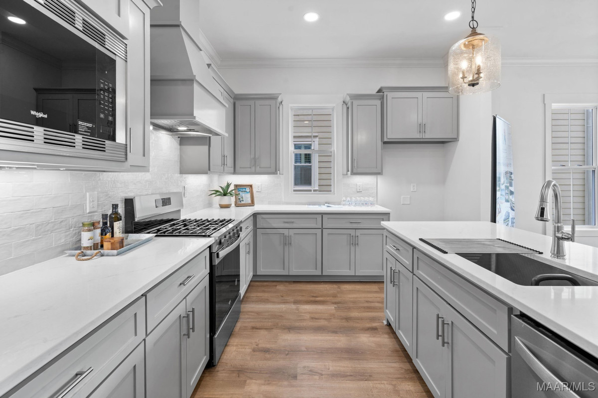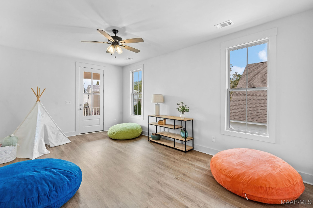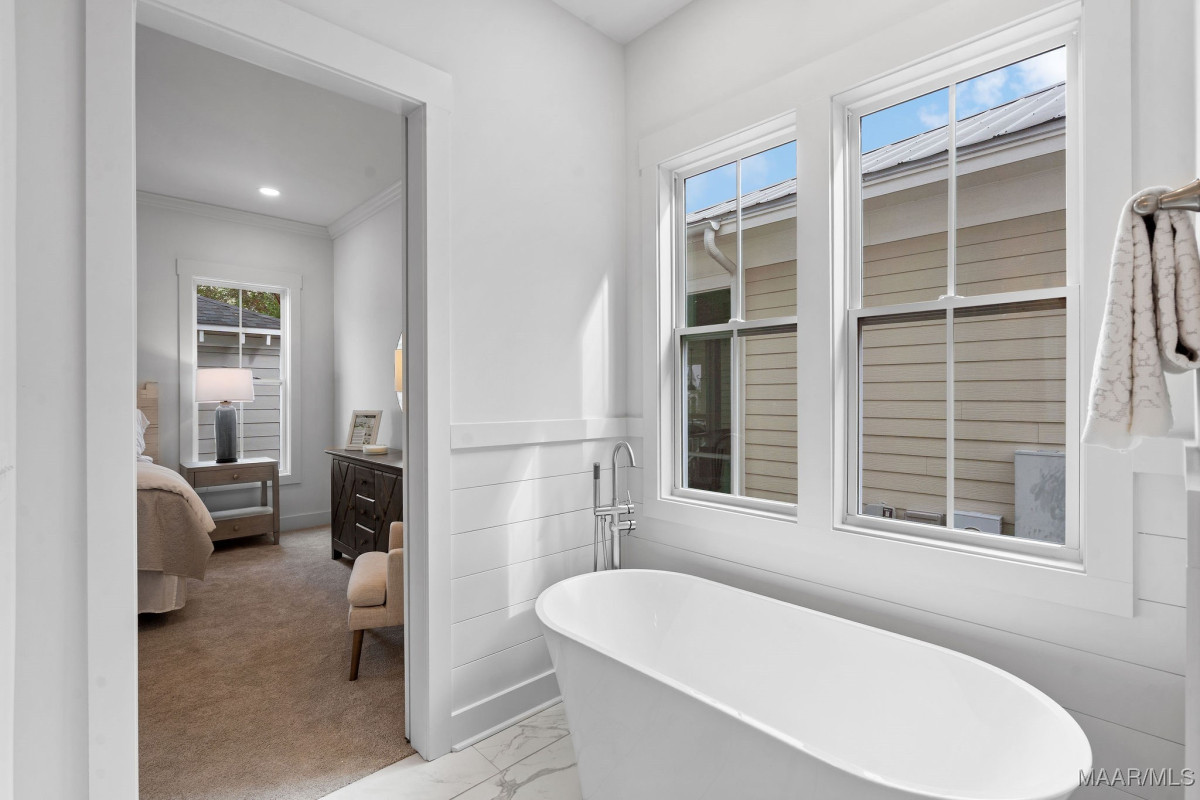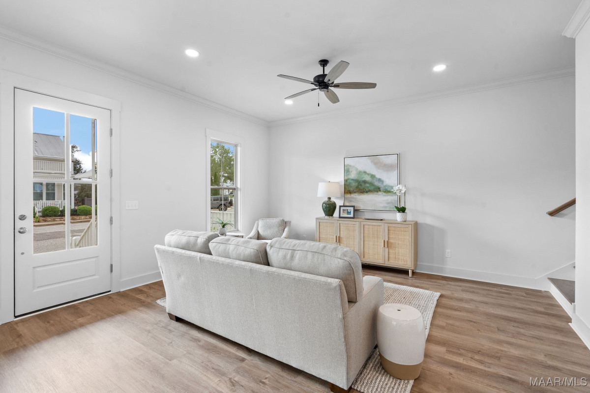 Welcome to 40 Main Street by Russell Construction! Located in the heart of The Waters community in Pike Road, this charming 3-bedroom, 2.5-bath home blends Southern elegance with thoughtful modern upgrades. The double front porches offer serene lake peeks and the perfect place to enjoy quiet mornings or relaxed evenings—just steps from the Town Center, Town Square, Marina, Lucas Point Pool, and more. Inside, the luxurious downstairs owner’s suite features a spa-like bath with a soaking tub, double vanity, and walk-in closet. The heart of the home boasts an open-concept living area and a beautiful kitchen with a built-in microwave, gas oven with vent hood, and generous counter space. Upstairs, you’ll find two spacious bedrooms, a full bath, an office space, and a large bonus room with durable LVP flooring. Step out onto the upper balcony and take in the charm of Main Street from your private perch. Additional highlights include a spacious laundry room with built-in cabinetry for extra storage, an outside storage room and dedicated golf cart parking, and a large fully-fenced side yard offering extra space to play or garden. This move-in ready home truly captures the spirit of The Waters, where community, convenience, and comfort come together.