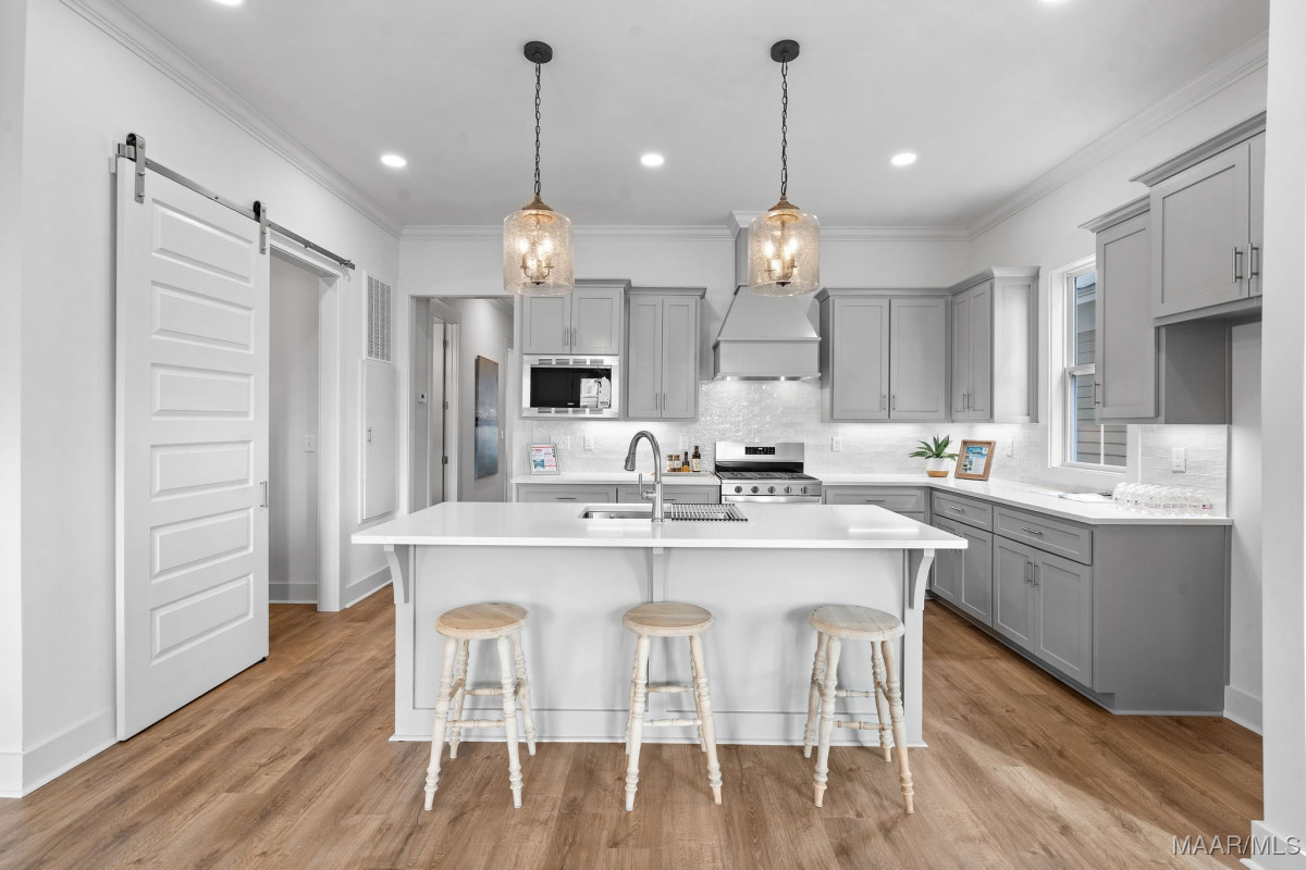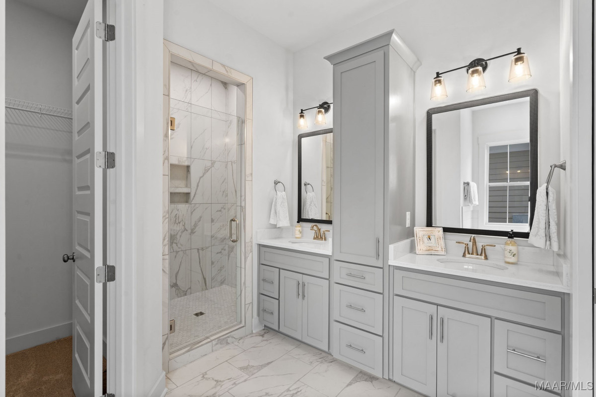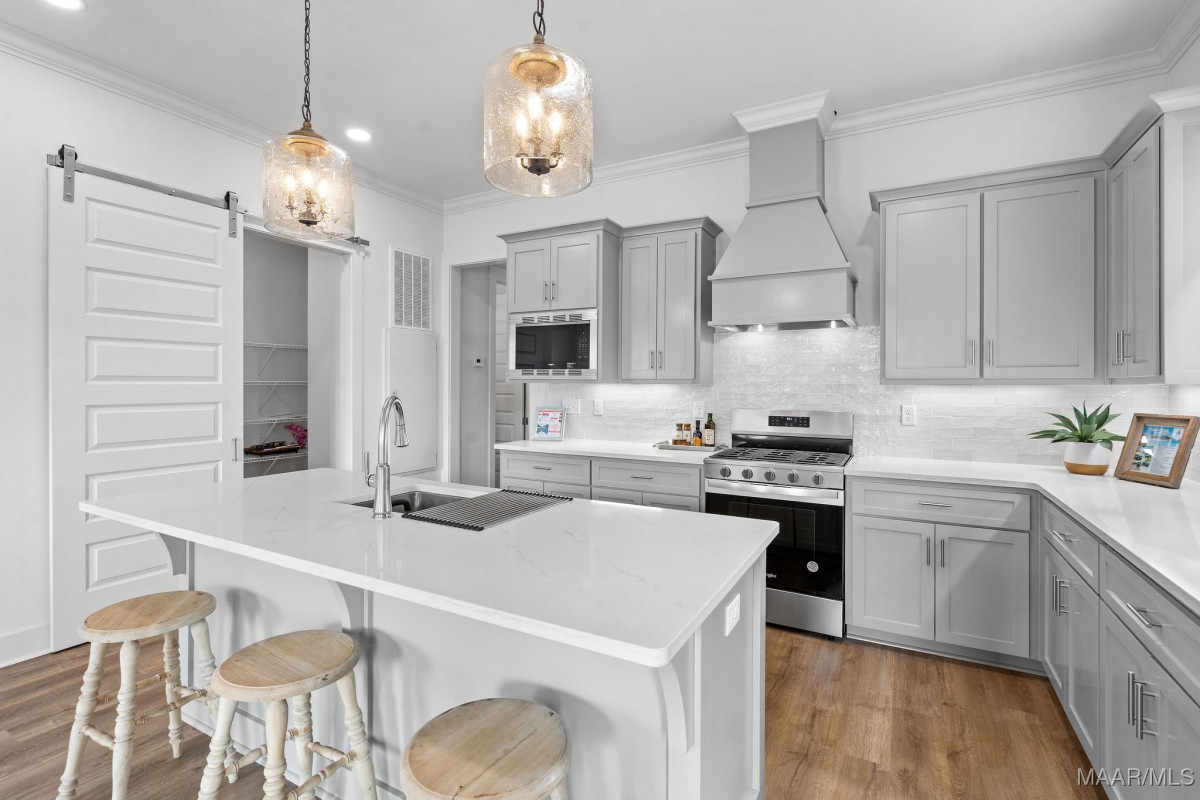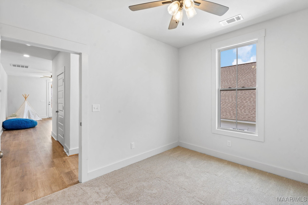Welcome to 40 Main Street by Russell Construction! Located in the heart of The Waters community in Pike Road, this charming 3-bedroom, 2.5-bath home blends Southern elegance with thoughtful modern upgrades. The double front porches offer serene lake peeks and the perfect place to enjoy quiet mornings or relaxed evenings—just steps from the Town Center, Town Square, Marina, Lucas Point Pool, and more. Inside, the luxurious downstairs owner’s suite features a spa-like bath with a soaking tub, double vanity, and walk-in closet. The heart of the home boasts an open-concept living area and a beautiful kitchen with a built-in microwave, gas oven with vent hood, and generous counter space. Upstairs, you’ll find two spacious bedrooms, a full bath, an office space, and a large bonus room with durable LVP flooring. Step out onto the upper balcony and take in the charm of Main Street from your private perch. Additional highlights include a spacious laundry room with built-in cabinetry for extra storage, an outside storage room and dedicated golf cart parking, and a large fully-fenced side yard offering extra space to play or garden. This move-in ready home truly captures the spirit of The Waters, where community, convenience, and comfort come together.