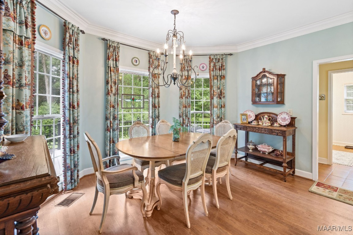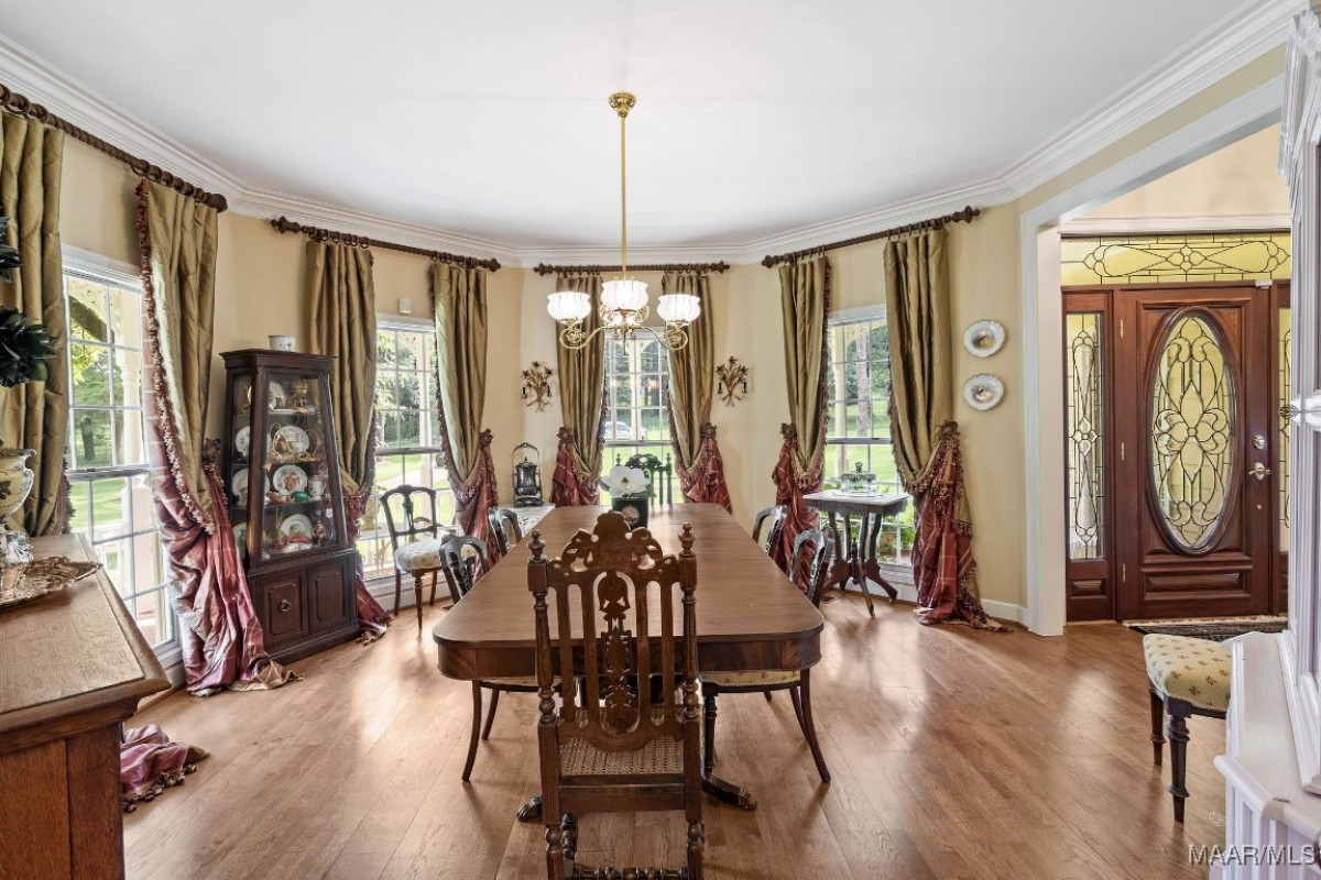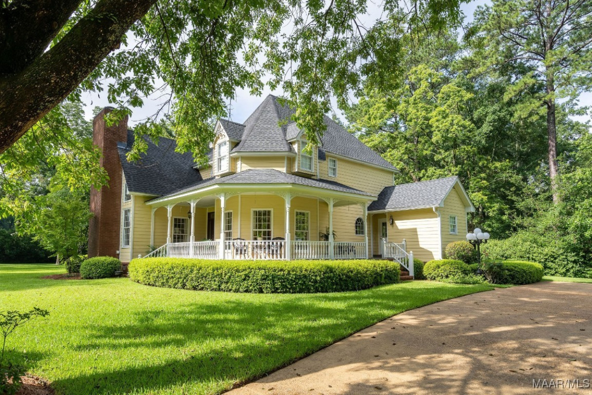 Welcome to one of the most iconic homes in town, this exquisite custom-built Victorian estate sits on over five beautifully maintained acres, graced with mature trees, sweeping lawns, and timeless elegance. Proudly featured in two national magazines, this one-of-a-kind property combines architectural artistry with enduring quality. From the hand-carved 1750s French mantel that anchors the living space to the custom cabinetry and millwork throughout, every inch of this one-owner home showcases craftsmanship rarely seen today. With 4 spacious bedrooms and 3.5 well-appointed baths, the home balances grandeur and warmth, offering a magazine-worthy setting for both intimate family moments and unforgettable gatherings. Designed for entertaining, this property has hosted weddings, showers, and garden teas, all set against the backdrop of lush landscaping and a well-driven irrigation system that keeps the grounds picture-perfect. A large workshop or barn adds versatility for hobbyists or additional event space. Inside, the home flows effortlessly, elegant yet livable, with a timeless aesthetic that never goes out of style. The kitchen and baths remain largely original, showcasing the enduring quality of their materials and design. Select appliances and countertops reflect the home’s era, adding character while remaining fully functional. These thoughtfully preserved spaces blend seamlessly with the home’s overall appeal, ready for modern updates, or perfectly lovely just as they are. The roof and HVAC systems were all replaced within the last five years, and the water heater was updated in 2018, offering peace of mind and modern reliability. Whether you’re sipping sweet tea on the wraparound porch or watching fireflies dance at dusk, you’ll feel worlds away without ever leaving town. This is more than a home, it's a legacy property that’s been the setting for cherished memories & is ready for its next chapter. If you’ve been waiting for something truly special, this is it.