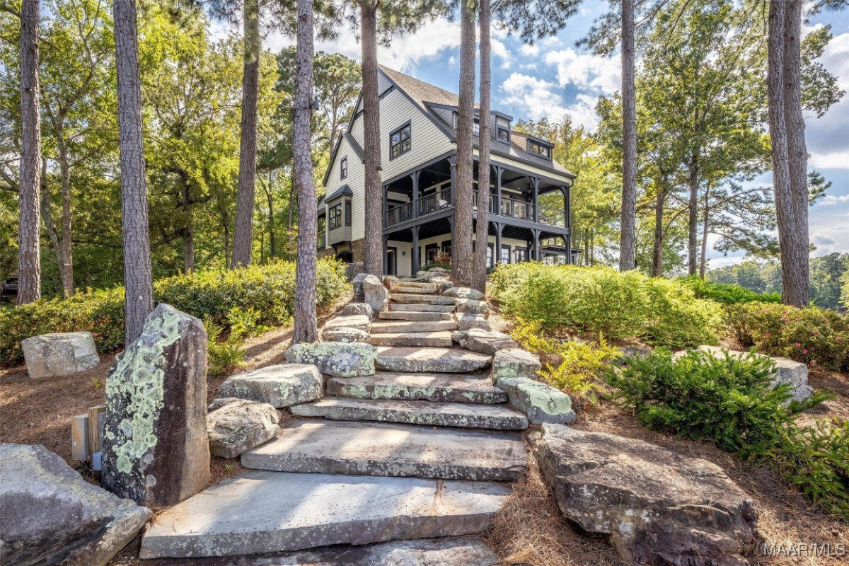 From Alexander City, take Hwy 63S. Turn left onto Windermere, turn right onto Ridge Pkwy into the Ridge development. Take the third exit in the roundabout onto N Ridge. Go .6 of a mile and home will be on the left.