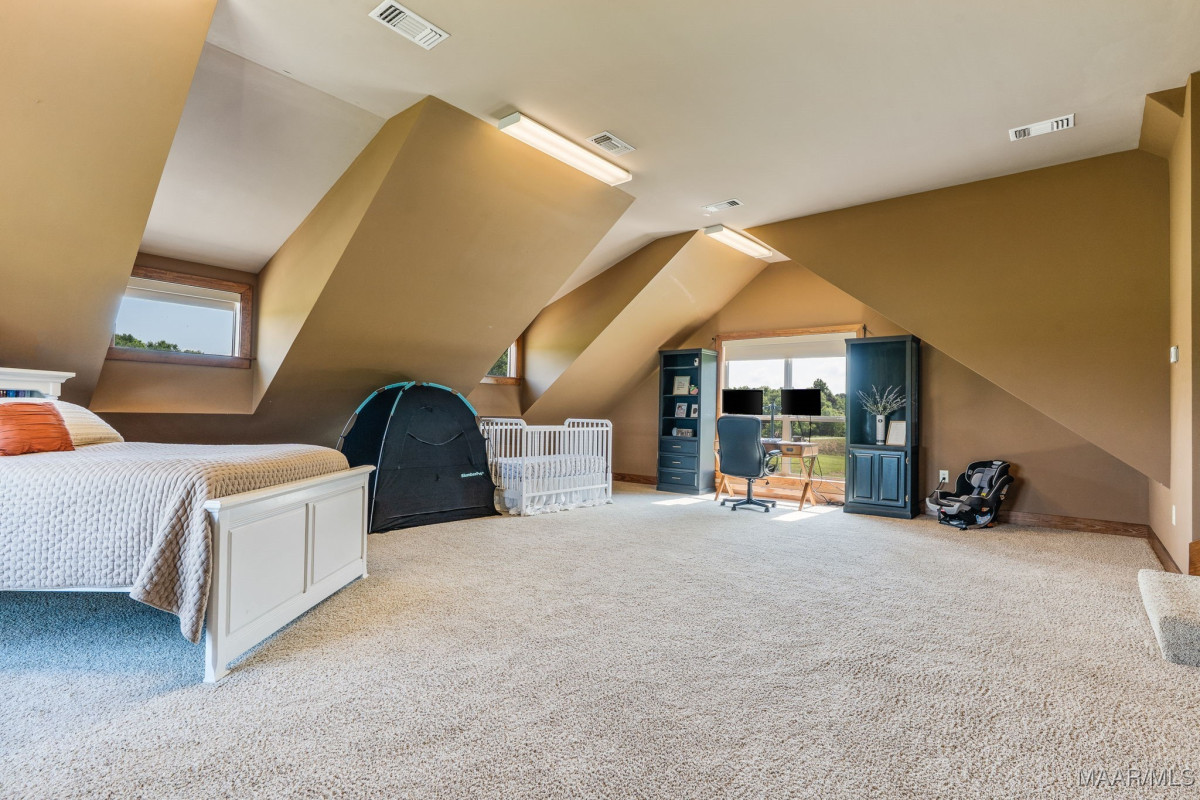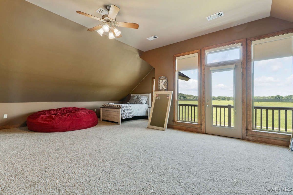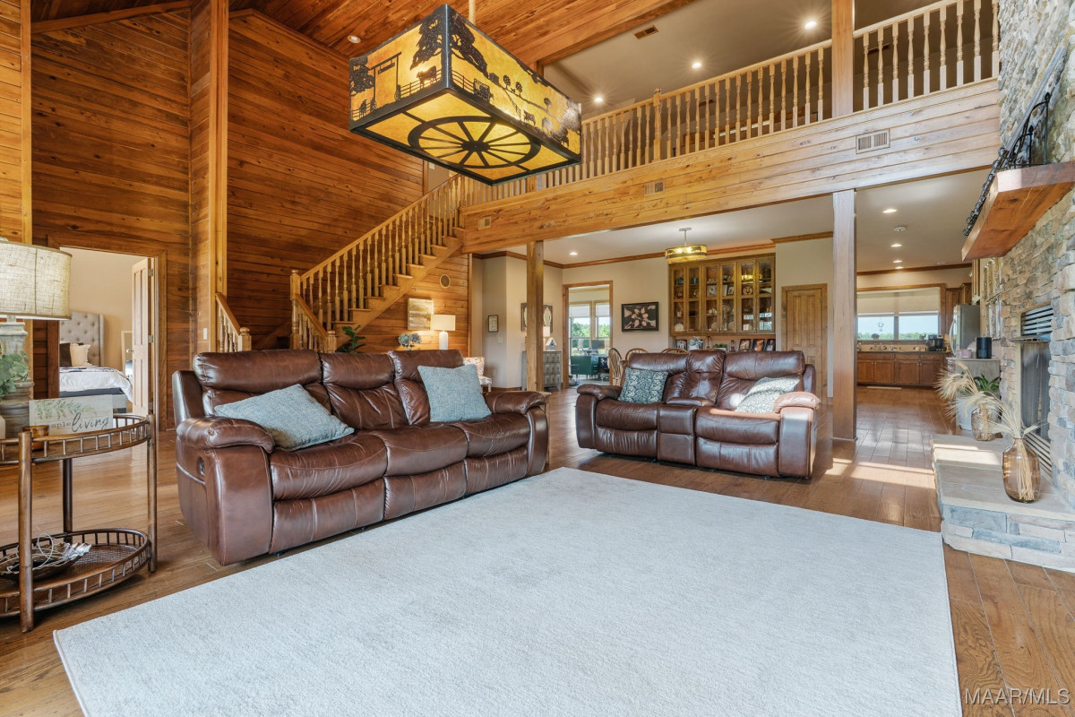 Fabulous ranch home on about 15 acres! Greet your guests as they step on to the brick and stone front porch. Enter the massive great room with tongue and groove walls and 25 ft vaulted ceiling. Hard wood floors and stone fireplace. Stay here a minute to take in all of the features of this room. Custom light fixtures, built in shelving, wall of windows. The open dining room boasts a 10 ft custom, lighted china cabinet, decorator's closet, 12 ft ceilings, and plenty of room for family dining. Feast your eyes on this kitchen with a very impressive, granite topped work island with tons of storage and room for chairs or stools. 5 burner gas cook top with pot filler. Double wall ovens, electric. Built in microwave. Walk in pantry. A tremendous amount of counter and cabinet space. Recessed and pendant lighting. There is casual/breakfast room and desk space in the corner with tons of windows for beautiful views and adjacent sunroom flooded with natural light. The enormous master suite with sleeping and sitting area. His and Her dressing areas with walk in closets, 2 vanity areas, jetted tub, and a separate shower afford this homeowner a luxurious space for dressing each morning. Beautiful tile work and fixtures. Wait until you see this laundry room! Lots of counter and cabinet space, built in ironing board, sink, hanging area, room for an additional refrigerator or freezer. On the other side of the house are 2 large guests rooms that share a walk through bathroom. Make sure you click through the photos. Upstairs you will find a large loft, game room, full bath and 4th bedroom with a private balcony and stunning view. Continue through the loft into the remarkable attic storage space. Keep walking. Open the next door to the Bonus room. This space over the carport can be accessed from the upstairs or from the carport. The outside living space is amazing with covered and screened porches, acreage, 2 ponds, tractor shed and workshop.