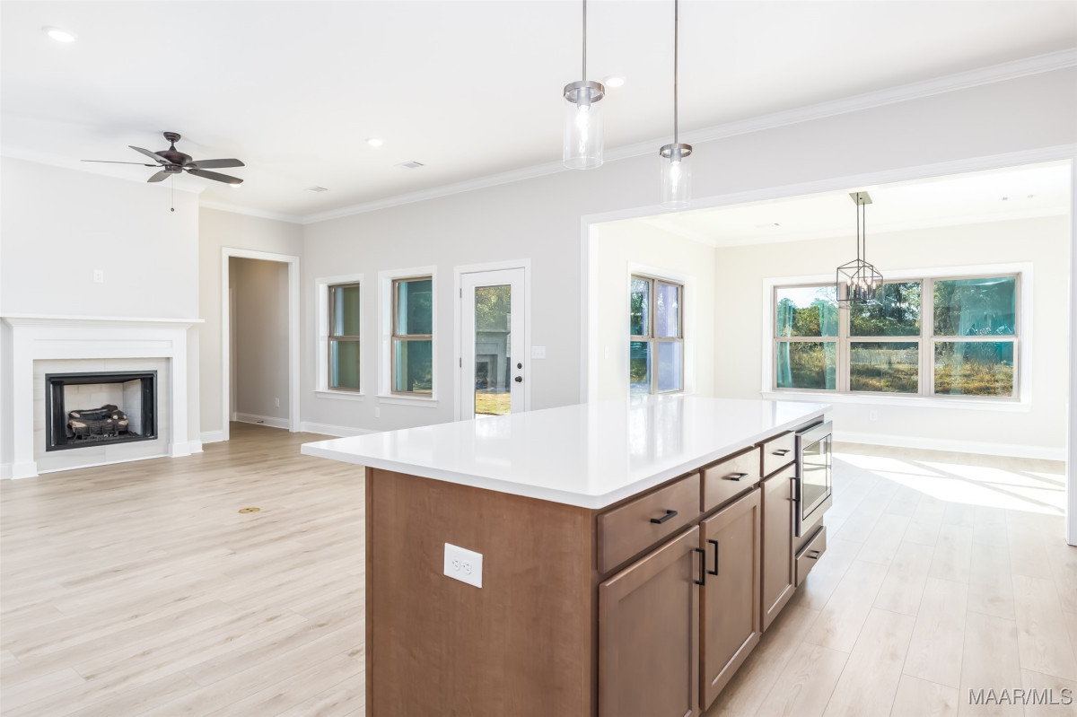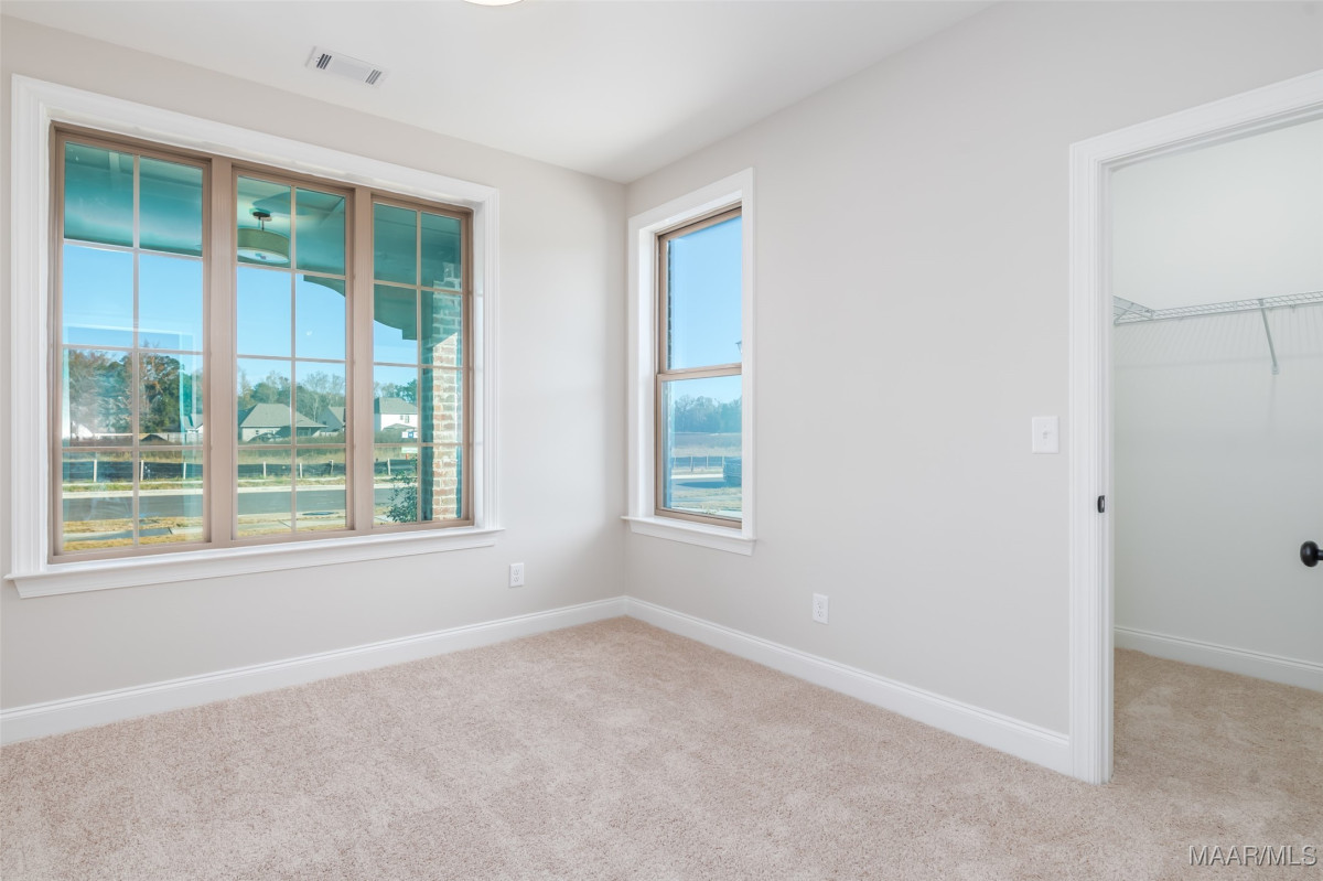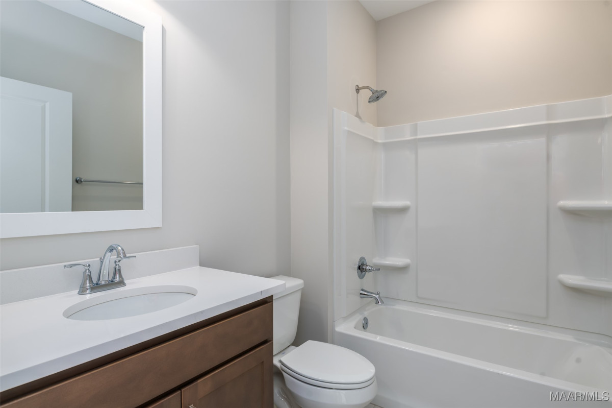 New Home in Pike Road is move in ready and offers a $25K Builder Incentive PLUS an additional $7500 towards closing cost with preferred lender! The Sheffield A is a unique one-level, 3-bedroom 2.5 bath home that offers tons of character! From the story book cottage exterior to the detailed interior features, this one is a favorite. The large circular foyer welcomes you into a gallery hallway with added trim details and leads to the great room with 10 ft. vaulted ceilings, a gas fireplace, and a view to your 12x21 covered back patio. The kitchen has vaulted ceilings as well and features an oversized work island with enough room for extra seating, quartz countertops, an upgraded gallery appliance package with 5-burner gas range/center griddle & air fryer settings, matching cabinet vent hood & large walk-in pantry. It also adjoins to the bright and spacious dining room. The half bath for guests is tucked around the corner with an access door to the quaint side porch area for convenience. The master suite has added LVP flooring & features a bright bay window accent. The master bath has double vanities, a walk-in shower, separate garden tub, built-in linen shelves and a huge walk-in closet. The spare bedrooms both have large walk-in closets and there's stairs to an unfinished attic space upstairs for a ton of additional storage! The rear loading attached garage provides a long stately driveway with ample parking. Lot#72 backs up to a wooded area for a private backyard view and a full irrigation system has been added to this home. High Energy standards with Low-E Windows, Tankless gas water heaters, Smart home features, Architectural shingles & gutters on every home plan are our standard! Please contact me for selection information or incentive details. Come take a look and you’ll feel the difference this charming neighborhood offers. Penn Meadows is less than a mile to the new Publix Shopping Center and easy access to Pike Road Schools, East Chase Shopping, and I-85.