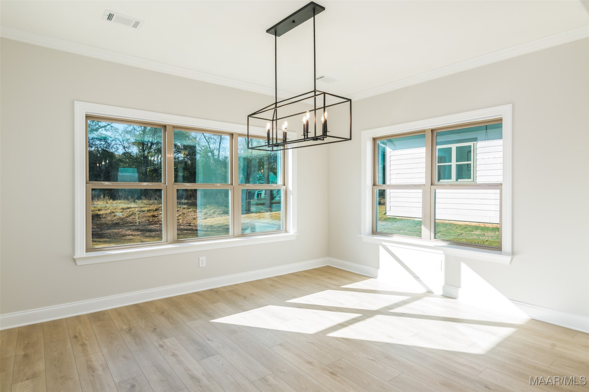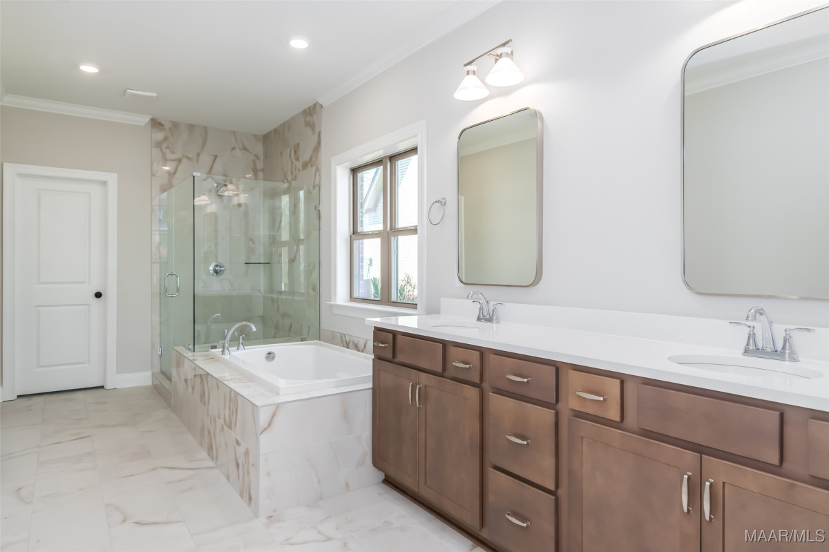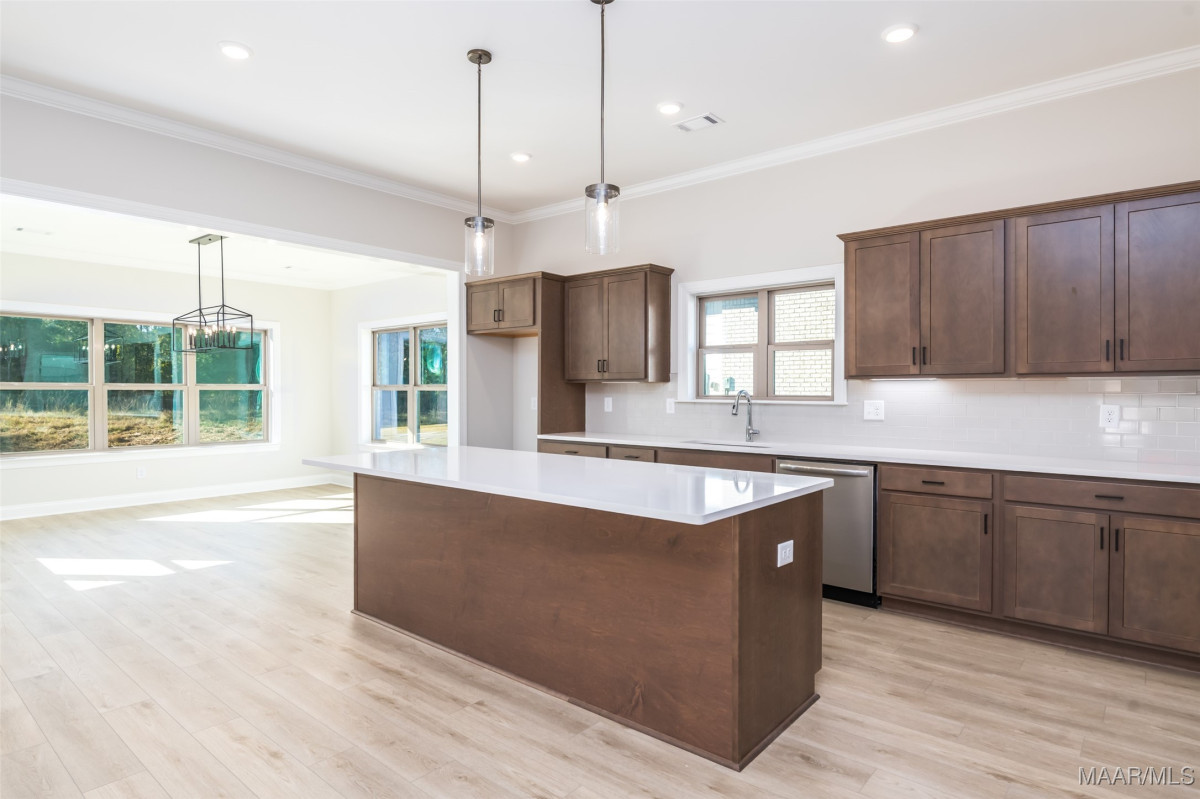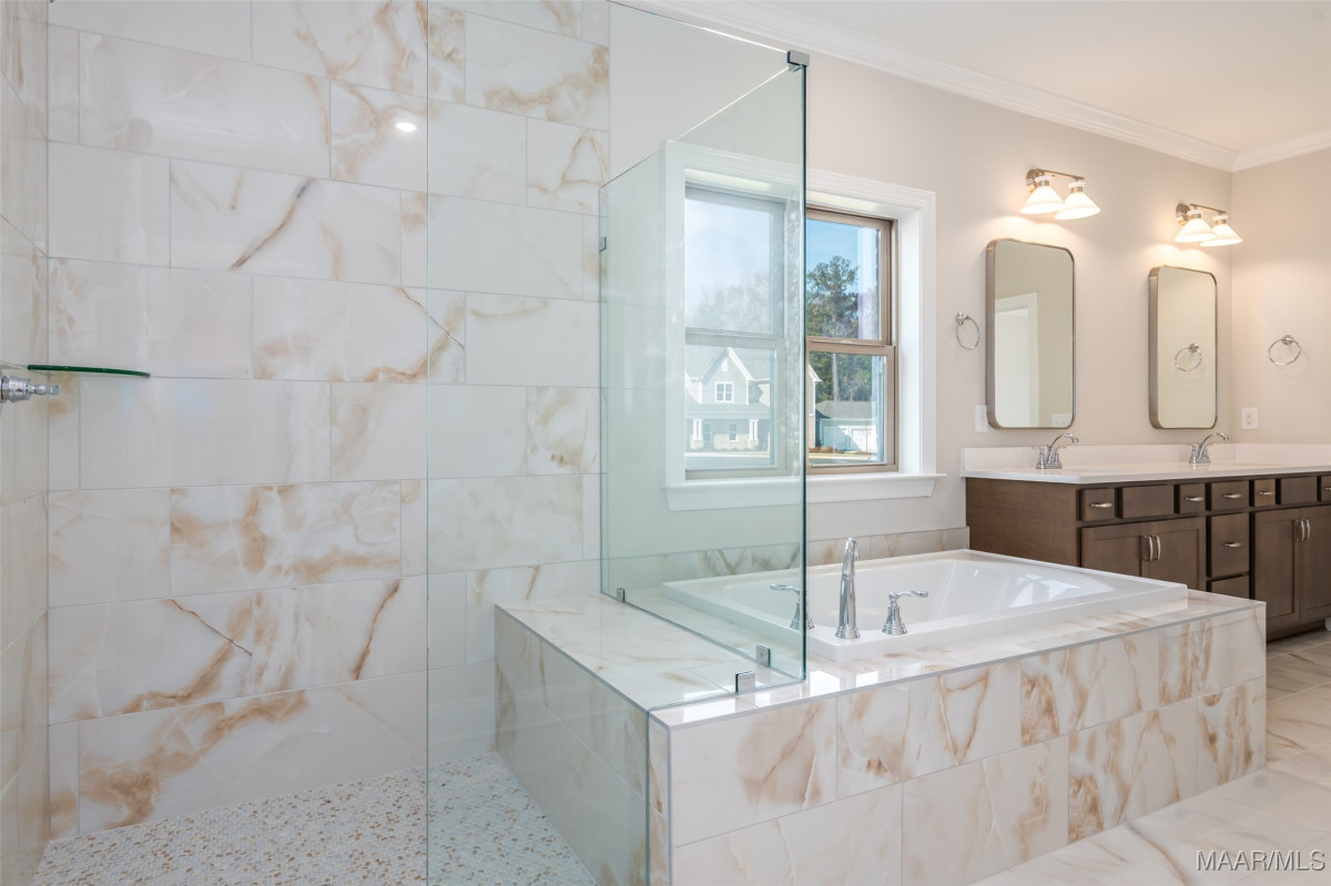New Home in Pike Road is move in ready and offers a $25K Builder Incentive PLUS an additional $7500 towards closing cost with preferred lender! The Sheffield A is a unique one-level, 3-bedroom 2.5 bath home that offers tons of character! From the story book cottage exterior to the detailed interior features, this one is a favorite. The large circular foyer welcomes you into a gallery hallway with added trim details and leads to the great room with 10 ft. vaulted ceilings, a gas fireplace, and a view to your 12x21 covered back patio. The kitchen has vaulted ceilings as well and features an oversized work island with enough room for extra seating, quartz countertops, an upgraded gallery appliance package with 5-burner gas range/center griddle & air fryer settings, matching cabinet vent hood & large walk-in pantry. It also adjoins to the bright and spacious dining room. The half bath for guests is tucked around the corner with an access door to the quaint side porch area for convenience. The master suite has added LVP flooring & features a bright bay window accent. The master bath has double vanities, a walk-in shower, separate garden tub, built-in linen shelves and a huge walk-in closet. The spare bedrooms both have large walk-in closets and there's stairs to an unfinished attic space upstairs for a ton of additional storage! The rear loading attached garage provides a long stately driveway with ample parking. Lot#72 backs up to a wooded area for a private backyard view and a full irrigation system has been added to this home. High Energy standards with Low-E Windows, Tankless gas water heaters, Smart home features, Architectural shingles & gutters on every home plan are our standard! Please contact me for selection information or incentive details. Come take a look and you’ll feel the difference this charming neighborhood offers. Penn Meadows is less than a mile to the new Publix Shopping Center and easy access to Pike Road Schools, East Chase Shopping, and I-85.
