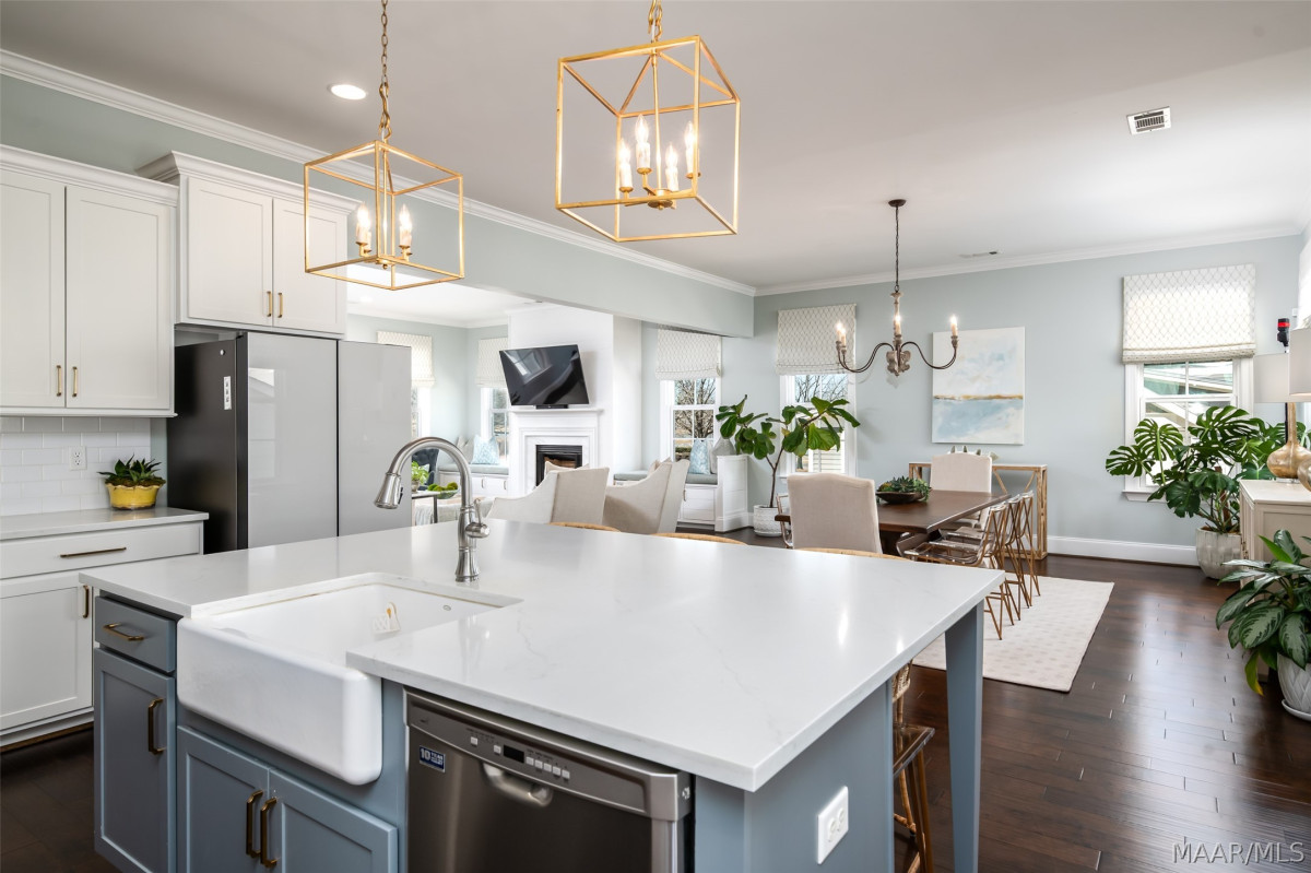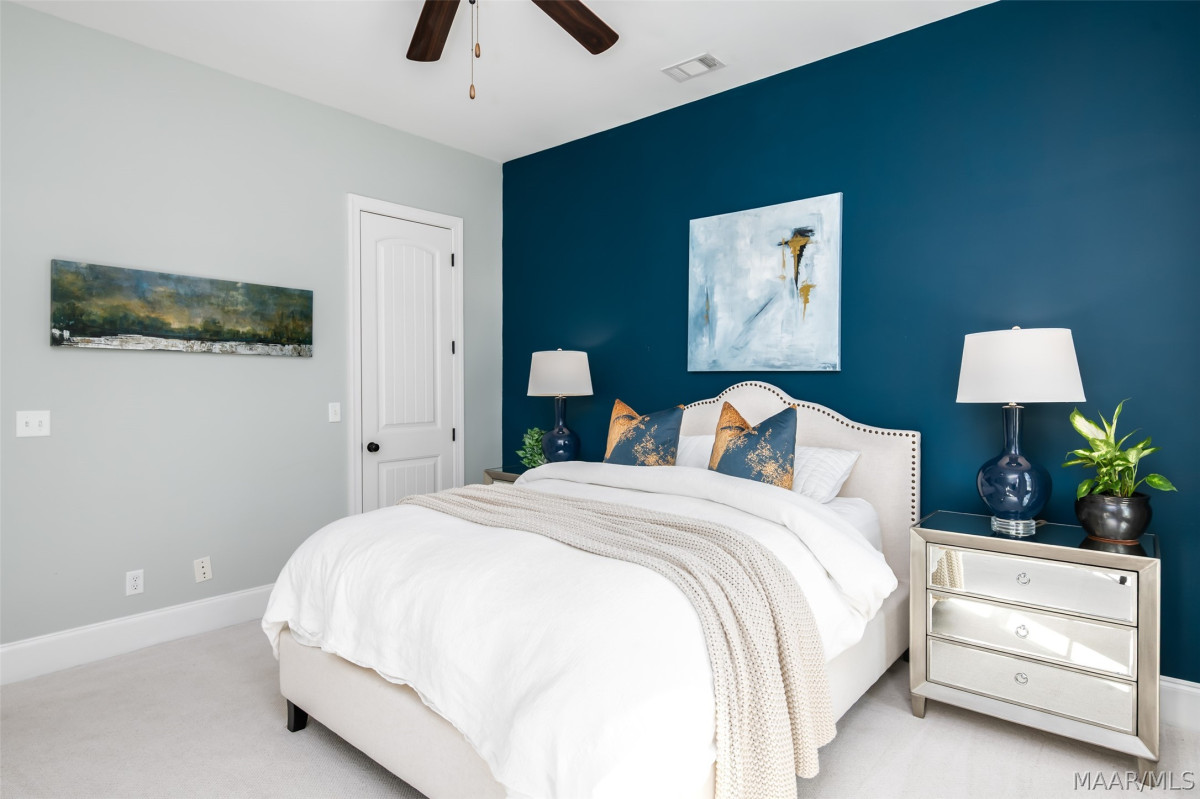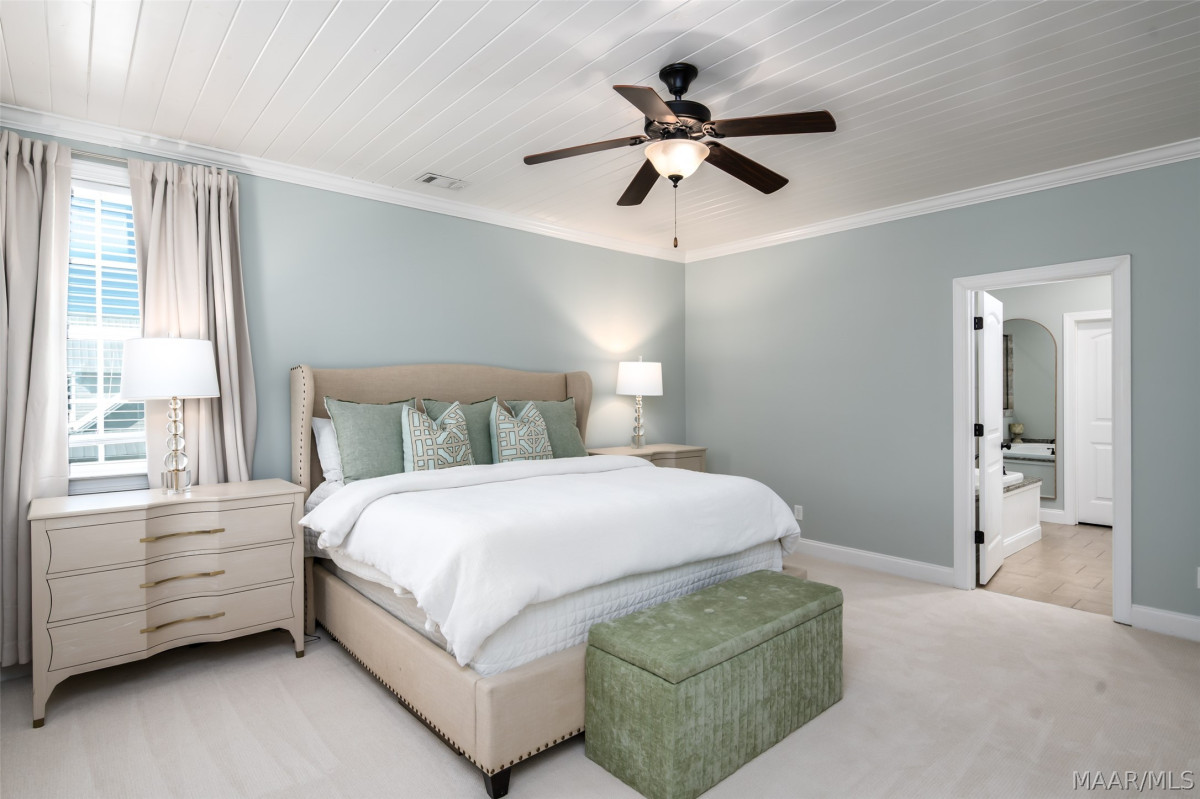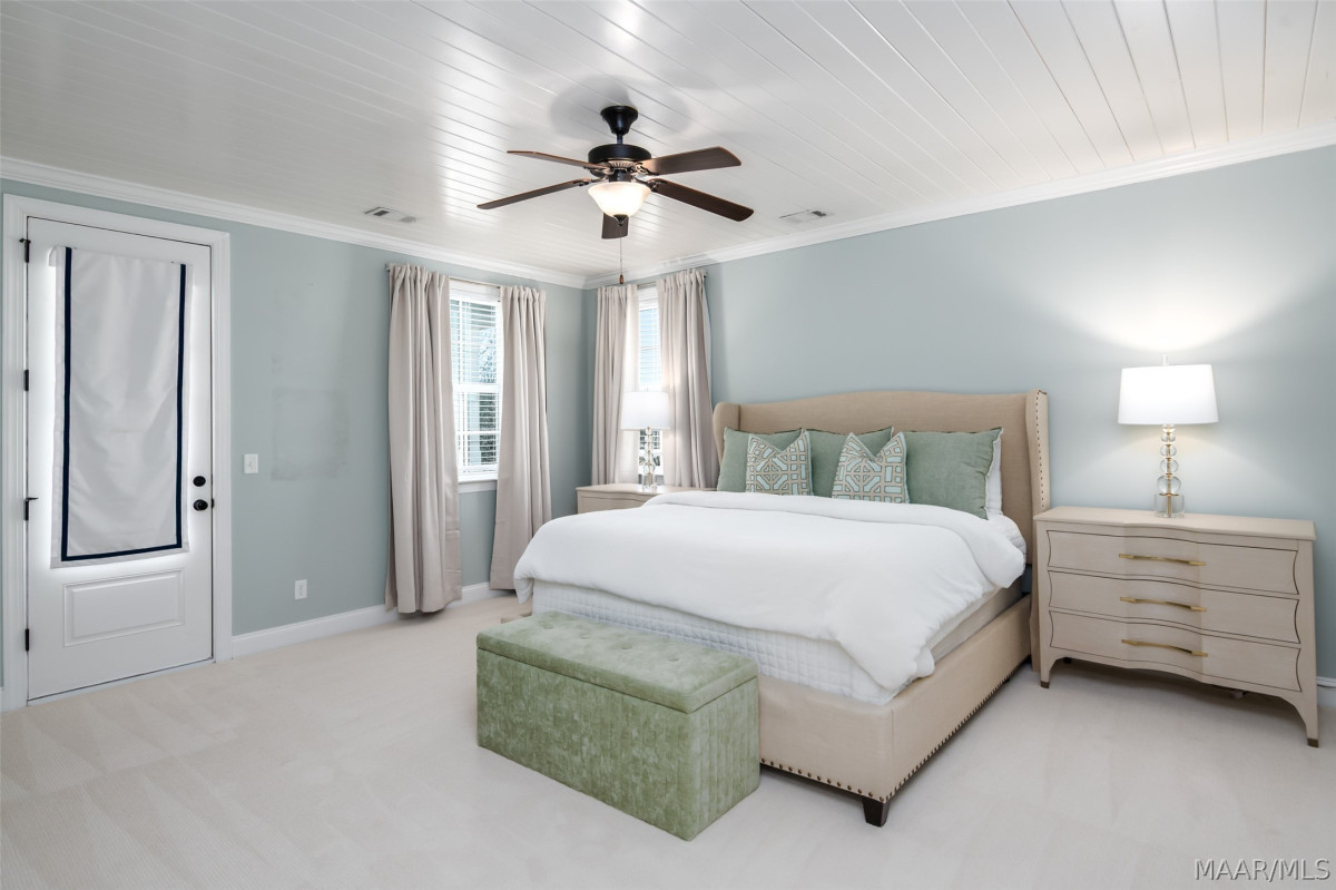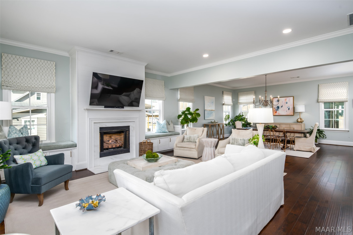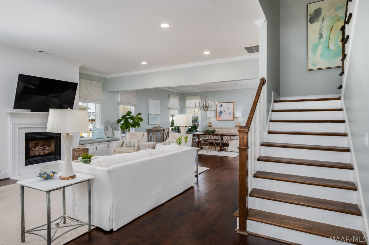 One of a kind listing in the Waters Subdivision. This house was built by Newcastle Homes and then the owners added lots of upgrades! The Brooke Plan is a beautiful 2-story plan located on tree-lined Lake Cameron Drive. Just a short walk from the Blue Heron Pool Club and Lake Cameron Views. The Water view from the 2nd story balcony is phenomenal. Enter via your covered front porch into the foyer area. Hardwood floors throughout the main areas of the 1st floor. The great room has an open floor plan with a ventless gas fireplace and custom cabinets with window seat cushions. Large dining area conveniently located just off the kitchen. The kitchen features premium stainless steel gas range, dishwasher and microwave hood, a farmhouse sink, decorative backsplash, professionally designed cabinets, and Polarstone Olympia Quartz countertops. Large pantry and mudroom located just off the kitchen. There is a covered back porch leading to the 2-car carport with storage. This is a great carport because it is flat and the owners were able to use it to entertain. The second floor features a wonderful owner's suite with attached bath. It also has brand new carpet and was just recently painted as well. The owner's bath has professionally designed cabinets, ceramic tiled flooring, granite countertops, a tiled shower with a comfort control feature, garden tub, and walk-in closet. Bedrooms 3 and 4 on the 2nd story share a jack and jill bath with double vanity. Spacious loft area on the 2nd floor is perfect for the whole family and has access to the covered 2nd story balcony with those beautiful VIEWS! This is a must see! Vacation at home right here in Pike Road. World class fishing, two swimming pools, 3 tennis courts, 4 pickleball courts, beach, dog park, town square, fire pit, soccer field, playborhood hill, and Trail to Education (walking trail to new school). Shopping & Dining at our Town Center businesses! Don't miss out on this one of a kind property, call today!